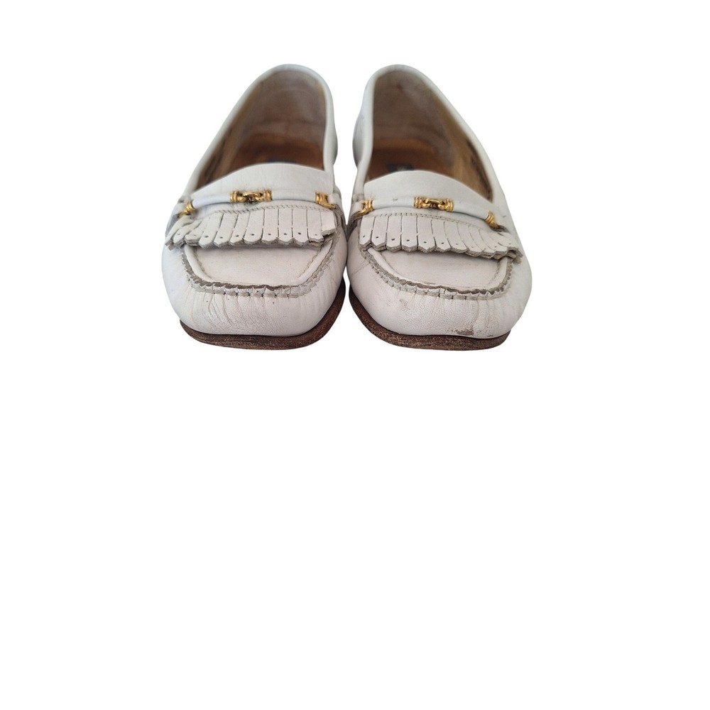 Bally Vintage White Leather Loafers Size 5 Made in Italy