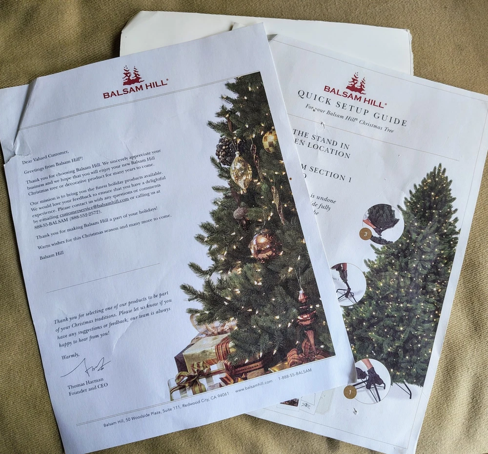 This is an extremely well made Balsam Hill Artificial Christmas Tree. It's been used twice, being disassembled and stored inside the included storage bag each time. The large, durable storage bag holds all 3 tree pieces, 5 light ropes, plus the base very easily. The branches effortlessly fold up and down. The design perfectly mimics an actual Blue Spruce pine tree. Your holiday visitors will be shocked to find that this is actually an artificial Christmas tree. Additionally, because of the high quality materials and construction, this tree makes a significantly smaller mess than a real tree. The tree ranges from 7 to 7.5 feet tall, depending on how you shape the top few branches and what you decide to top it with. I am also including 5 strings of Christmas lights that I've used to light the entire tree in the past. (3) Blue light strings, 25' each. (2) White light strings, 25' each. The retail price on the tree was $799 when I purchased it brand new. I'm asking $250 OBO. Unfortunately, due to the weight of everything included, and the ever increasing rates service rates of USPS and FedEx, I cannot offer free shipping. Any reasonable offers will be considered. Message me with any questions. Thanks for looking!