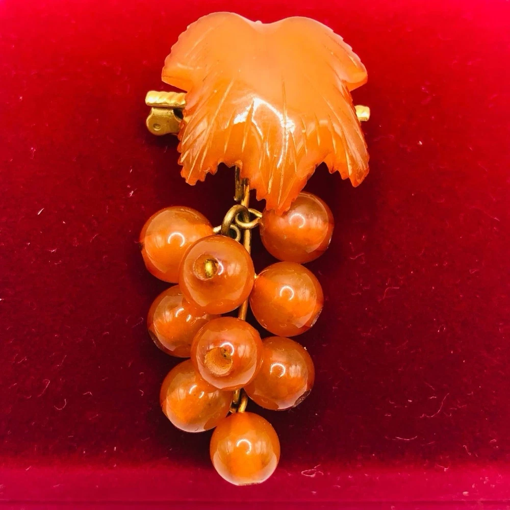 This vintage Baltic Amber Brooch featuring grapes is a unique and elegant piece of jewelry from the USSR era. Crafted from brass with a beautiful multicolor amber stone, this asymmetrical brooch is signed by the Kaliningrad Factory and exudes a retro, ethnic charm. Perfect for special occasions like Mother's Day, Christmas, anniversaries, birthdays, and Valentine's Day, this brooch captures the essence of the Soviet era with its original design and craftsmanship. A stunning addition to any jewelry collection, this brooch is a true testament to the beauty and artistry of vintage jewelry. There are my other items... https://www.ebay.com/usr/universeofjewelry