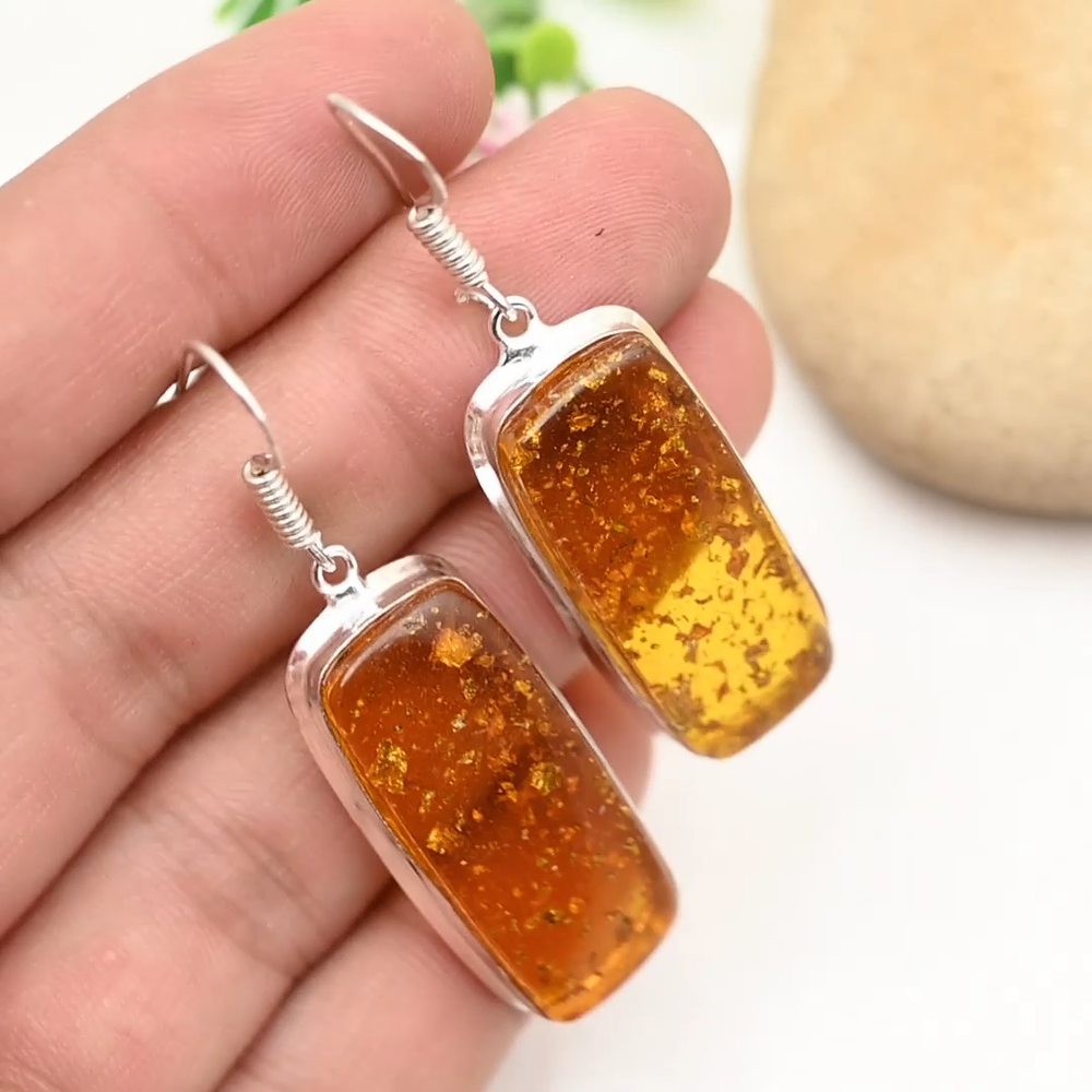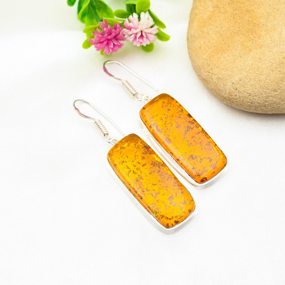 Dainty Baltic Amber Earrings in 925 Sterling Silver Handmade Gift
