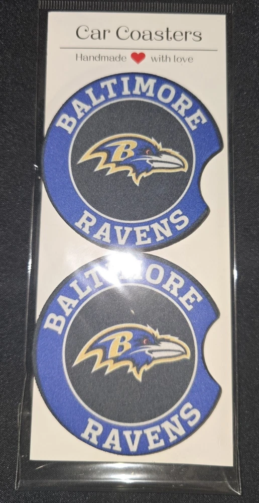 This Baltimore Ravens gift set includes a Raven logo mug, a reusable air freshener, a key chain, and car coasters. The set is designed for fans of the Baltimore Ravens football team and features their logo and colors. Perfect for enjoying a drink, freshening up your car, and showing off team spirit. Fits all standard-size cup holders for the car and any other for furniture. It helps absorb moisture from cups and keeps grim from sticking to the bottom. Details:- Design is sublimation ink pressed into the fabric.-2.75 inches round-Fabric top and rubber bottom-Set of 2 CoastersCare Instructions:- Handwash only.- Do not wash in the dishwasher. Please take into account that the design of each coaster may vary. These coasters are handcrafted so the placement may vary from coaster to coaster. The color may vary slightly due to the nature of the lighting and different screen settings. I do my best to take pictures in natural bright light to show the true color.