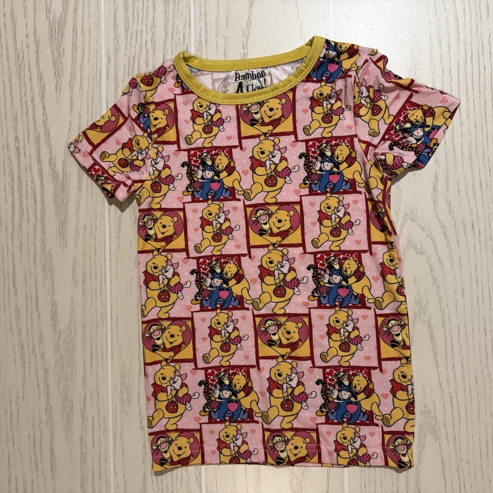Adorable bamboo pajama set from Bamboo 4 You featuring a sweet Winnie the Pooh print. This 2-piece set includes a short sleeve top and matching shorts, made from ultra-soft bamboo fabric that is breathable, stretchy, and gentle on skin. Designed with a snug fit for comfort and safety, making it perfect for sleep or lounging. New without tags and in excellent condition—boutique-quality sleepwear at a great value! Details • Brand: Bamboo 4 You • Size: 3T • Condition: New Without Tags (NWOT) • Character: Winnie the Pooh • Color: Pink / Multicolor • Material: Bamboo (viscose blend) • Style: 2 Piece Pajama Set (Top + Shorts) • Sleeve: Short Sleeve • Bottoms: Elastic Waist Shorts • Fit: Snug Fit Features: • Ultra-soft bamboo fabric • Breathable & lightweight • Stretchy for comfort • Gentle on sensitive skin • Elastic waistband for easy fit • All-over Pooh print Shipping • Fast shipping (1 business day) • Carefully packaged Bundle & Save : Check out my store South Peach Trends for more bamboo and boutique finds!