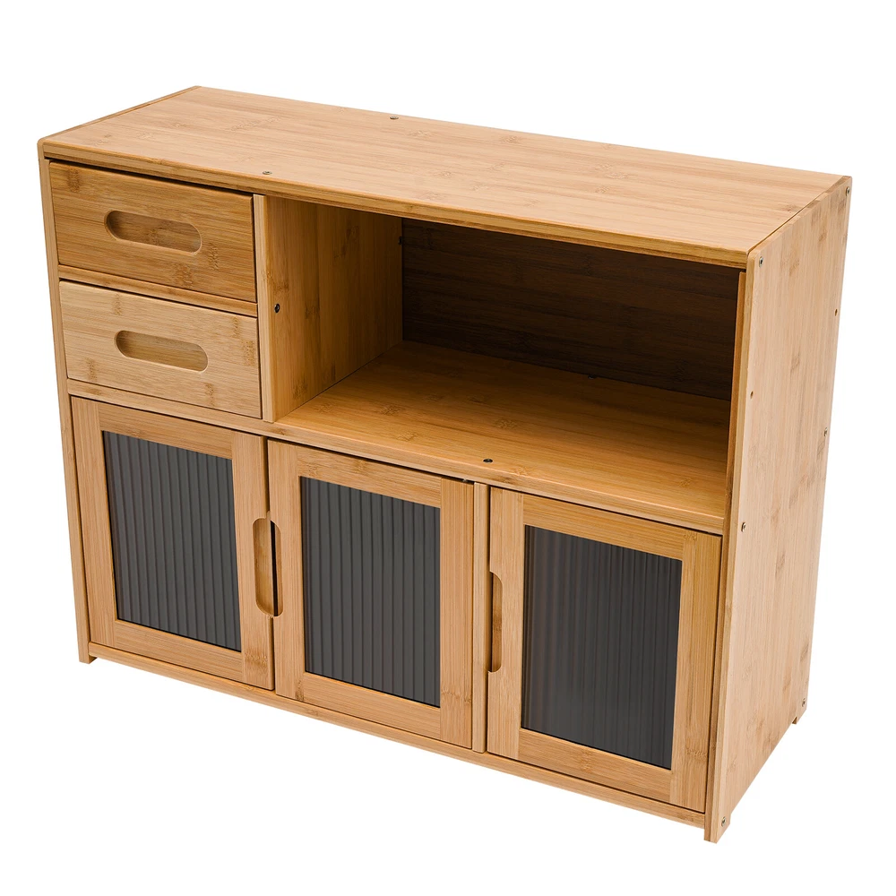 Wood Storage Cabinet,Bamboo+Acrylic Kitchen Storage Cabinet Pantry Cabinet Description~~ Description Looking to add some organizational magic to your space? Look no further than the sleek and versatile kitchen storage cabinet! Two drawers, an open space, and a large storage space at the bottom make full use of vertical space for you to place items in the limited space. This innovative piece of furniture is designed to give you the edge when it comes to storing and organizing your belongings in an organized, tidy, and efficient manner. Specification Color: Wood color Shape: Rectangular Mounting Type: Floor Mount Assembly Required: Yes Material: Bamboo, Acrylic Finish: Painting Each Tier Load-bearing Capacity: About 7.5-10kg/16.5-22 lbs Drawer Load-bearing Capacity: About 2.5kg/5.5 lbs Thickness: About 12mm/0.47in Product Size: 62*23*48cm/24.4*9*18.9in Drawer Height: 9cm/3.5in Open Tier Size(L*H): 39*19cm/15.3*7.5in Bottom Tier Size(L*H): 62*25cm/24.4*9.8in Key Features High-end Materials : The premium bamboo with painting, and acrylic make this product sturdy, solid, and environmentally friendly, ensuring a long service life without being easily scratched or damaged. High Stability : The thickened board(12mm), screw-reinforced stabilized structure, stable feet, and reinforced composite backboard help it to support about 16.5-22lbs load-bearing capacity of each tier, keeping it in place and ensuring the safety of your items. Ample Storage Space : The two drawers, one open space, and a large bottom space with doors give you the freedom to arrange the cabinet's interior according to the size and type of items you want to store, thus organizing your belongings and making the most of the cabinet's space. The top platform can also be used to place some small potted plants or a microwave oven, making it a practical and stylish storage area. Considerate Design : The extended embedded handle makes it easy for you to open drawers and cabinet doors. Visual doors provide convenience for you to quickly find the items you need and protect your food from direct sunlight. The magnet can achieve a tight fit and prevent dust from entering to keep food or utensils clean. AttractiveAppearance: The wood color paired with clear doors makes it both beautiful and stylish, which well blends with your kitchen, living room, bedroom, etc. while adding texture and beauty to your room. Easy to Assemble : Simple construction, pre-drilled holes, a glove, and complete accessories help you achieve a quick installation, you just need to make sure all parts are properly nested. Effortless Clean-Up : The smooth surface and simple structure allow for easy access to all its components and you can wipe it with a clean towel. Protective Packaging : The strong box, sponge, and foam provide comprehensive protection for the product to ensure that it is fully delivered to you to the greatest extent possible. Customer Service : We are honored that you have chosen our product. We have sufficient confidence in the quality of the product so that you can buy it confidently. But if you have any questions, you can contact our customer service, he will patiently answer and solve your problems. Details Smooth Edges : The edges are finely treated to provide a comfortable and safer touch. Three Doors : They can provide enough door-opening space for you to place and take out items more conveniently. Rods : The inside of the drawer is supported by extra bamboo rods, which can effectively prevent the drawer from falling accidentally. Application It suits many occasions, like home kitchen, dining room, hallway, living room, office, break room, restaurant, and so on to place kitchen items such as tableware, glass jars, microwave donkeys, spices, seasonings, and daily necessities such as books, photo albums, pens, documents, etc. Package Included 1* Storage Cabinet 1* Glove All Accessories for Assembly Notes Please note that food, flower pots, and other items are not included. Please allow the slight color difference caused by the shooting light and 1-3cm error due to manual measurement and make sure you do not mind before ordering. tu1 Payment Delivery details Terms of sales About us Contact us Payment We accept ebay payment 。 Fees such as import duties, taxes are not included in the item price or shipping costs. These charges are the buyer's responsibility. Delivery details Shipping: 2-9 working days to: USA Terms of sales We maintain high standards of excellence and strive for hundred percent customer satisfaction. Feedback is very important to us. We hope that you contact us immediately before you give neutral or negative feedback, so that we can address your concerns. It is impossible to address issues if we do not know about them! About us Your satis faction is our ultimate goal. We work hard to earn your trust and future business. Our certified technicians have tested each item before shipping. The unit comes with 1 year limited warranty on all manufacturing defects. a) If you receive a defective item, you may return it or ask for a discount. Please contact us within 14 days after you receive the package. b) What you returned must be intact and in its original packaging as re? u. Customer is responsible for shipping costs of the returned item. c) We will cover the cost of shipping back t with the shipping rate indicated in the registration page. We will send you a new unit or refund the full payment you paid. Thank you. Contact us Business Hour Business Hour: Monday To Friday: 8:30 AM to 5:00 PM (Beijing China time) Due to time zones, our reply to your questions may not be immediately. But within above working time, we will reply your email within 24 hours. If it's non-workdays, please kindly be patient and wait till Monday. Please contact us with ebay message. Please feel free to contact us if you have any questions. Monday To Friday: 8:30 AM to 5:00 PM (Beijing China time) Due to time zones, our reply to your questions may not be immediat