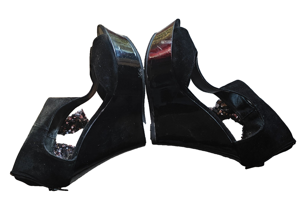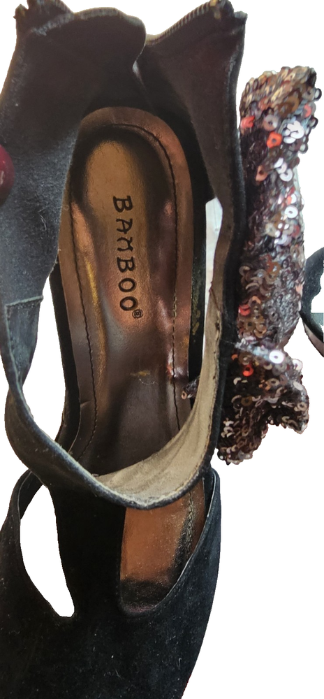 Step into elegance and comfort with these chic Bamboo platform heels. Designed for the modern woman, these shoes feature a sleek black synthetic upper complemented by a stylish ankle strap. Perfect for both day-to-night wear, their versatile design adds a touch of sophistication to any outfit. Crafted with meticulous attention to detail, these heels are a size US 7 and offer a contemporary platform style that's both fashionable and comfortable. Made in China, these shoes do not come customized, ensuring that you receive the intended design as envisioned by the creators at Bamboo.