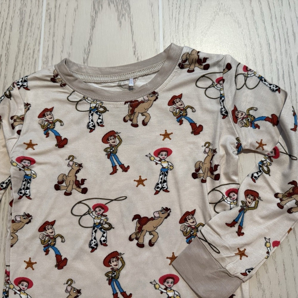 Bamboo Toy Story 2-Piece Pajama Set – Size 2-3Y Super soft boutique bamboo pajama set featuring an adorable Toy Story Jessie & Woody print. Perfect for your little Disney fan! • Condition: New without tags • Size: 2-3 Years • Set Includes: Long sleeve top + matching pants • Material: 95% Bamboo / 5% Spandex • Fit: Snug fitting (per tag recommendation) These pajamas are buttery soft, lightweight, breathable, and stretchy — perfect for bedtime or cozy lounge days. The elastic waistband provides a comfortable fit, and the bamboo fabric is gentle on sensitive skin. Great gift idea for Toy Story lovers! Please review all photos for details. Ships quickly and carefully packaged from my store. Smoke & Pet Free Environment Thank you for shopping with South Peach Trends