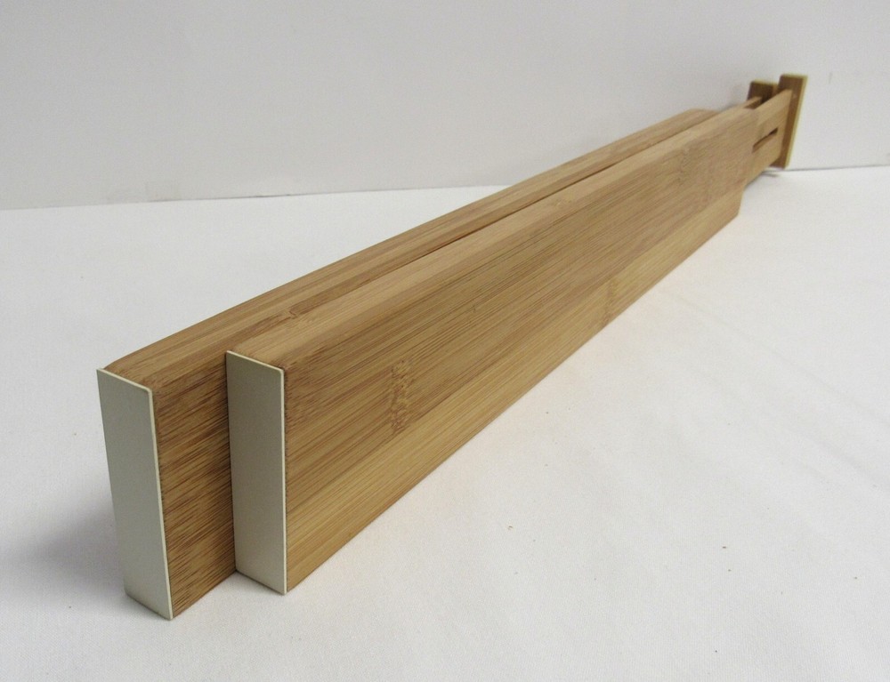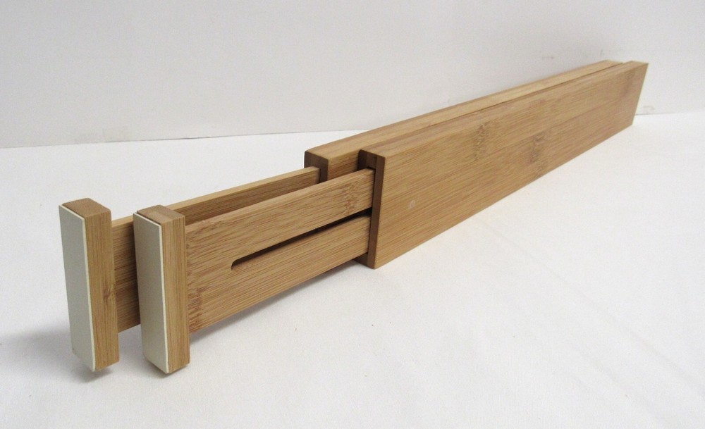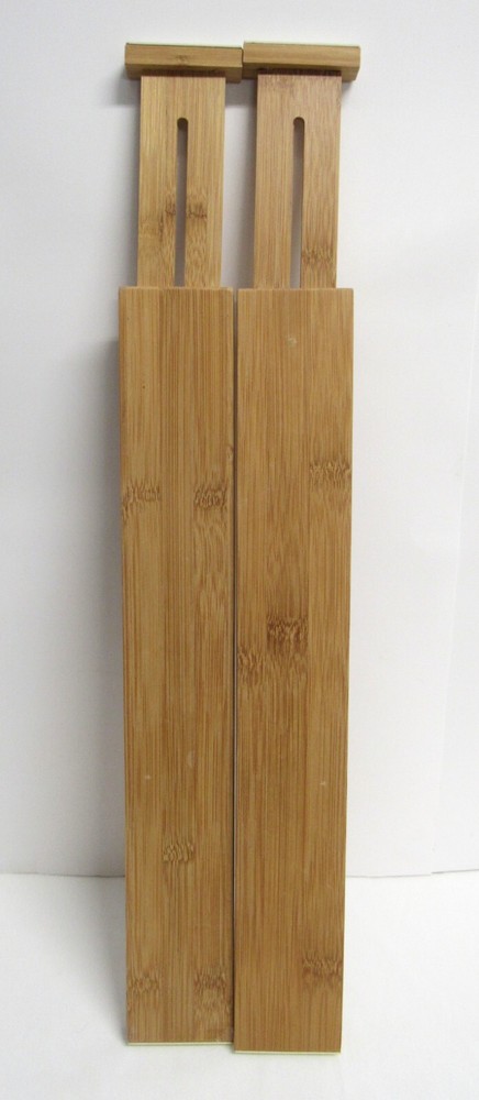 Bambusi Drawer Dividers, Bamboo Wood - Set of 2, Adjustable 17.5" to 22" - NWOT. Versatile Drawer Dividers that are adjustable. NEW, without packaging or tags. Starting at 22 inches, then can be compressed down to 17 1/2 inches. They are 2 1/2 inches high, 1/2 inches wide, made from Bamboo in China. NEW, never used, and ready to help organize your space. Ships via USPS Ground Advantage. - Please review all pictures as these are part of the description of this item - Please pay for items within three days of purchase - Feedback is highly appreciated - Message me with any questions before purchase