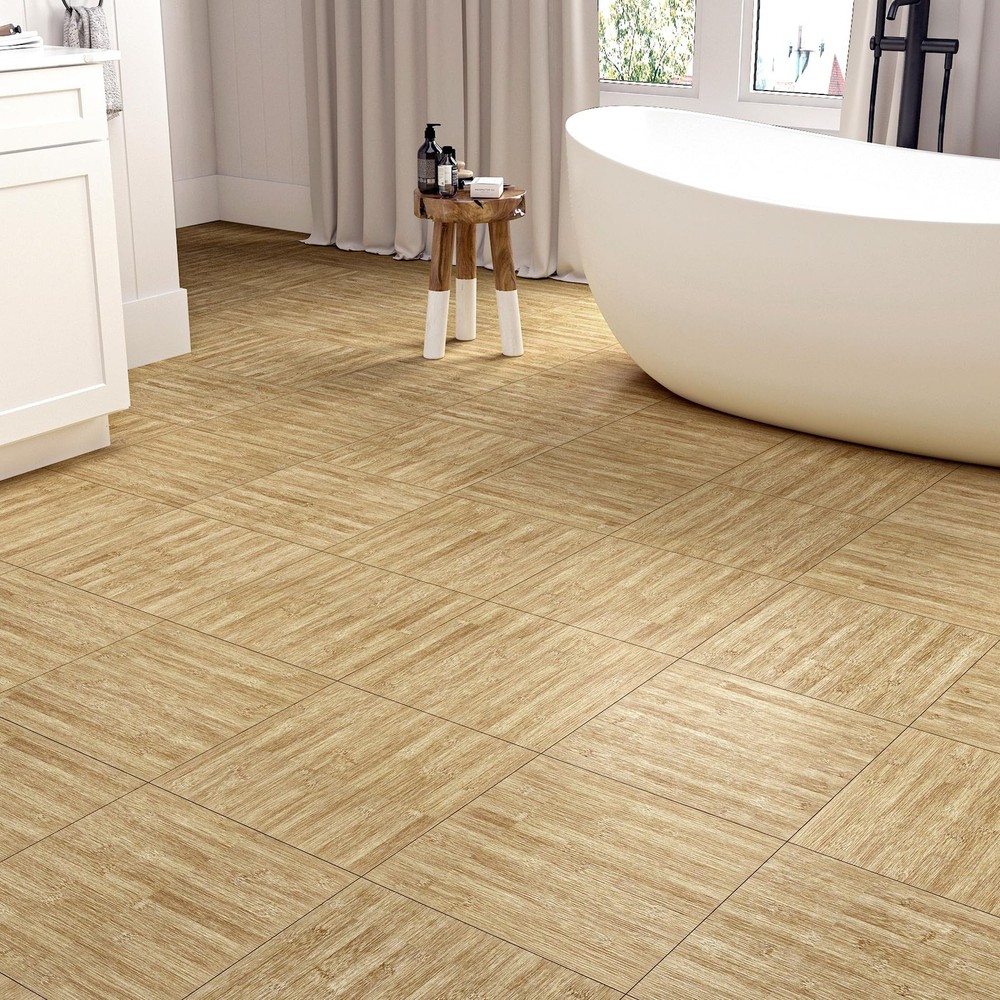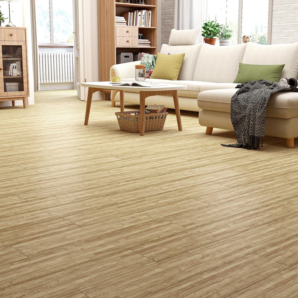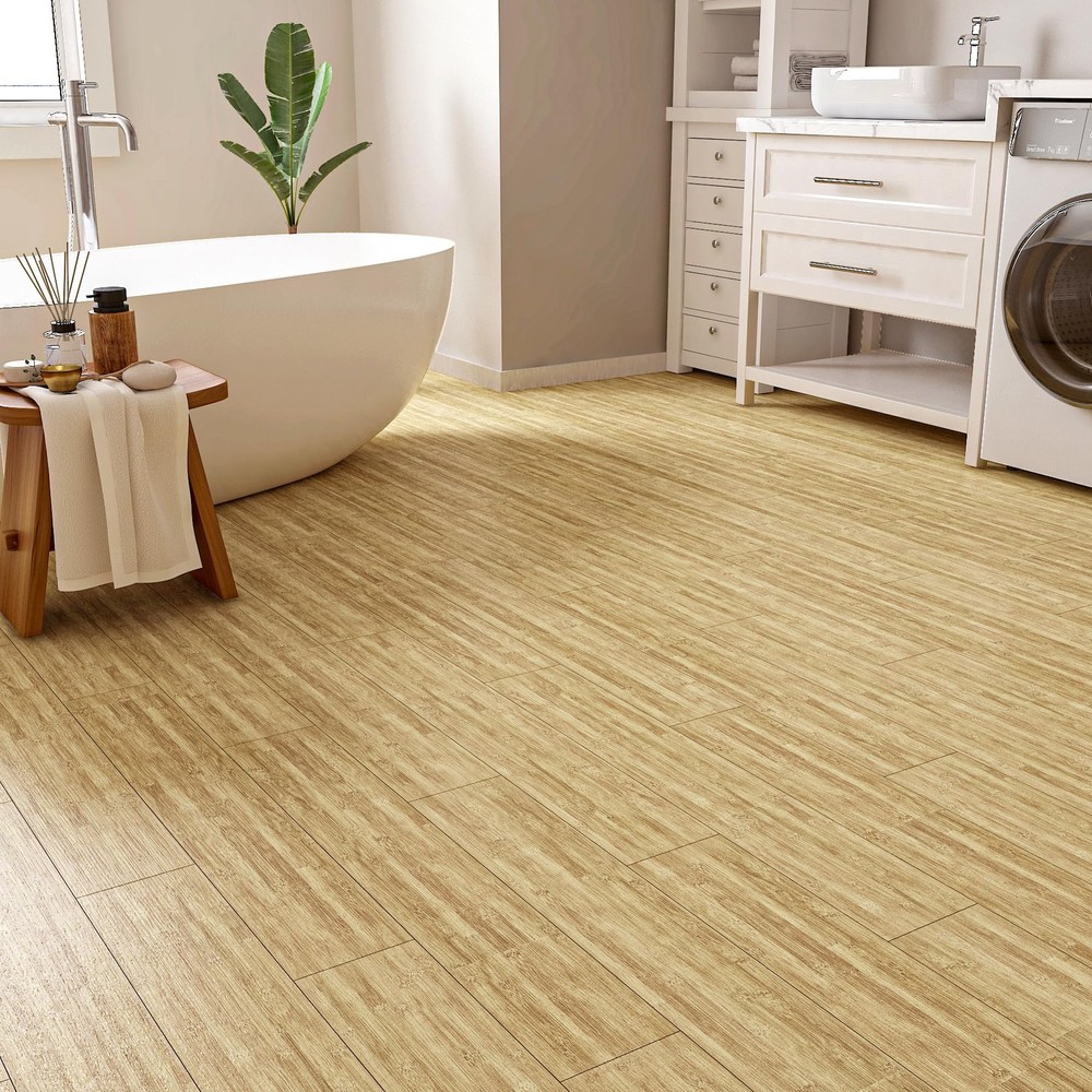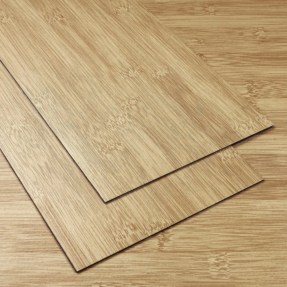 Bamboo Peel and Stick Vinyl Flooring Tile Bamboo grain vinyl flooring blends timeless elegance with modern practicality. It mimics the rich grain and warm tones of bamboo to add a touch of nature to any space. Its versatile design lends itself to rustic, modern or traditional decor. Transform your space with vinyl floor tile, the ultimate blend of style, durability and affordability. Whether you're renovating your home or upgrading your commercial space, the possibilities are endless with vinyl sheet flooring. Vinyl plank flooring is durable and can withstand the harsh elements of everyday life, resisting scratches, dents, stains. It is ideal for high-traffic areas such as hallways, kitchens and bathrooms, as well as homes with pets and children. Its wear-resistant layer provides an additional protective barrier that can be easily cleaned and maintained with only regular sweeping and occasional mopping. Vinyl floor tiles can be applied to flat, clean and dry floors. Vinyl flooring can be installed over most existing subfloors, including concrete, wood,linoleum and laminate, saving the time and money required for preparation. Vinyl floor tile is easy to install, just peel and stick. It is self-adhesive and requires no glue or complicated tools.In just a few hours, you can have a brand new floor to brighten up your home. Thickened vinyl flooring has been upgraded to a thickness of 0.06 inches. It resists curling and warping, and after gluing it has minimal gaps.It is durable, removable, easy to clean, non - fading, non-slip, waterproof and renter friendly!Vinyl floor tiles are waterproof.It's perfect for cluttered bathrooms or kitchens. If you want to increase its waterproofing, you can apply a silicone sealant to the floor tile joints. TIP : To avoid color variations, order all required vinyl flooring at the same time to ensure they are from the same production batch. 【Size】: Each bamboo vinyl flooring tile is 36"×6", 1.5 mm thick. Set of 18 pcs covering 27 sq. ft 【Realistic Bamboo Vinyl Flooring】: This flooring is a blend of rustic charm and modern simplicity. This natural bamboo flooring looks like real bamboo flooring. It gives a warm, natural feel and can be adapted to different decorative styles 【Easy to Apply】: Our self adhesive vinyl plank flooring are easy to install. No messy glues or complicated tools required. Just peel off the backing and stick them down. It make a low-cost, simple, and quick change to your floors to give your home a new look 【Premium Vinyl Flooring】: Made of high quality vinyl material, which is waterproof, non-slip, durable, thick, easy to clean, wear-resistant, non-warping and non-expanding. It removes without sticky residue and is renter friendly 【Versatile Vinyl Floor Tiles】: It is suitable for concrete, ceramic, wood and other floors, stairs, laminates, linoleum,shelves, ceilings, countertops, desks, and can be used to decorate kitchen, living room, dining room, bedroom, bathroom, RV, cubicle