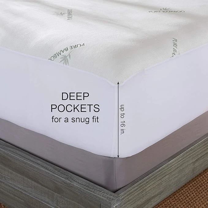 ✔ COMPLETE WATERPROOF MATTRESS PROTECTION: Accidents happen! Don't let a midnight mishap or sickness side-effect ruin your day;;; or your sleep schedule; Keep your mattress fully protected from moisture, damp conditions, wetness, spills, sweat, night time accidents and stains with this premium waterproof cover from Pure Bamboo; Carefully designed to meet the needs of toddlers, children, adults, the elderly, the incontinent with sizes available for the whole family! ✔ ENHANCE YOUR SLEEP for years to come with a waterproof mattress protector by Pure Bamboo; Safeguarding your mattress against stains, dust mites and perspiration will extend its usefulness and improve your comfort COMPLETE WATERPROOF MATTRESS PROTECTION: Accidents happen! Don't let a midnight mishap or sickness side-effect ruin your day;;; or your sleep schedule; Keep your mattress fully protected from moisture, damp conditions, wetness, spills, sweat, night time accidents and stains with this waterproof cover from Pure Bamboo; Carefully designed to meet the needs of toddlers, children, adults, the elderly, the incontinent with sizes available for the whole family! ✔ COMPLETE WATERPROOF MATTRESS PROTECTION: Accidents happen! Don't let a midnight mishap or sickness side-effect ruin your day;;; or your sleep schedule; Keep your mattress fully protected from moisture, damp conditions, wetness, spills, sweat, night time accidents and stains with this premium waterproof cover from Pure Bamboo; Carefully designed to meet the needs of toddlers, children, adults, the elderly, the incontinent with sizes available for the whole family! Product Description Waterproof Mattress Protector COMPLETE WATERPROOF MATTRESS PROTECTION Accidents happen! Don't let a midnight mishap or sickness side-effect ruin your day... or your sleep schedule. Keep your mattress fully protected from moisture, damp conditions, wetness, spills, sweat, night time accidents and stains with this premium waterproof mattress cover. Carefully designed to meet the needs of toddlers, children, adults, the elderly, the incontinent, pets and allergy sufferers. With sizes available for the whole family! THE SOUND OF SILENCE... and maybe snoring! But, one thing’s for sure – this exquisite cover is 100% crinkle-free, odor- free, noiseless and won’t disturb a wink of your sleep. WATERPROOF PROTECTION Protect your mattress investment with this Mattress Protector coated with a cool and comfortable TPU membrane barrier designed to prevent spills and stains from penetrating. 16 INCH DEEP POCKETS Deep 16 inch pockets and an elasticized skirt make for effortless ease of application. Enjoy a perfect snug fit that won't shift, slide, or most importantly, affect the feel of the bed you love. LUXURIOUSLY SOFT Not all mattress covers and sheet protectors are created equal. Imported. Machine washable. Available in sizes: Twin (39x76 inches), Full (54x75 inches), Queen (60x80 inches), King (76x80 inches) & California King (72x84 inches)