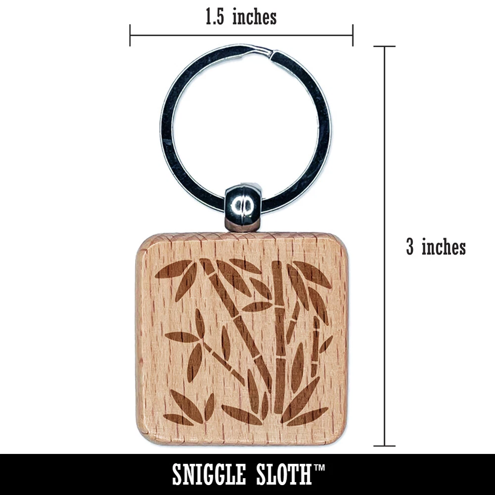 Bamboo Plants Engraved Wood Square Keychain Tag Charm