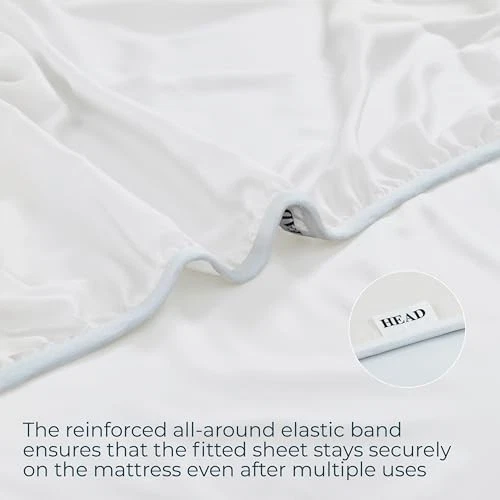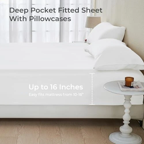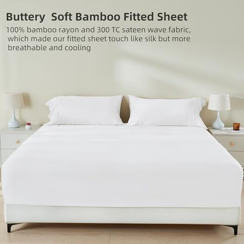 Bamboo Rayon Fitted Sheet and Queen - 3 PCS (NO Flat Sheet) 07 Bright White