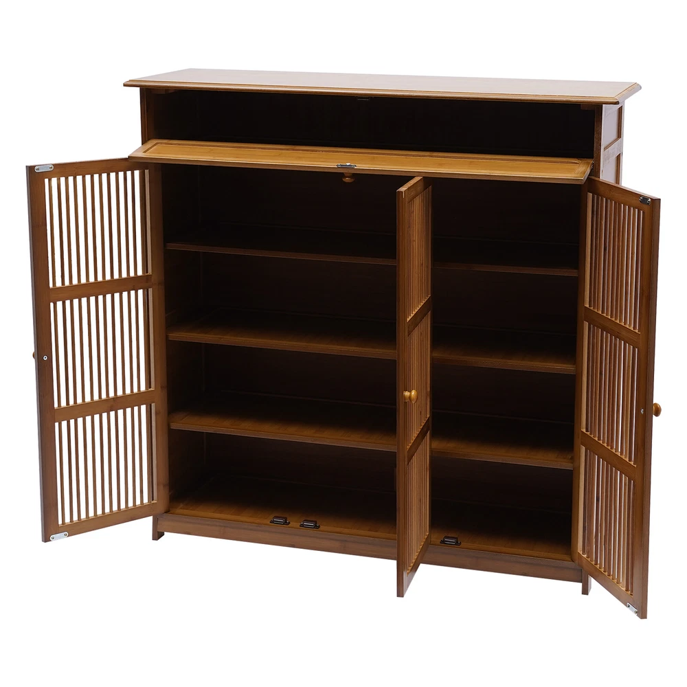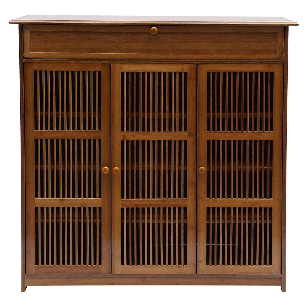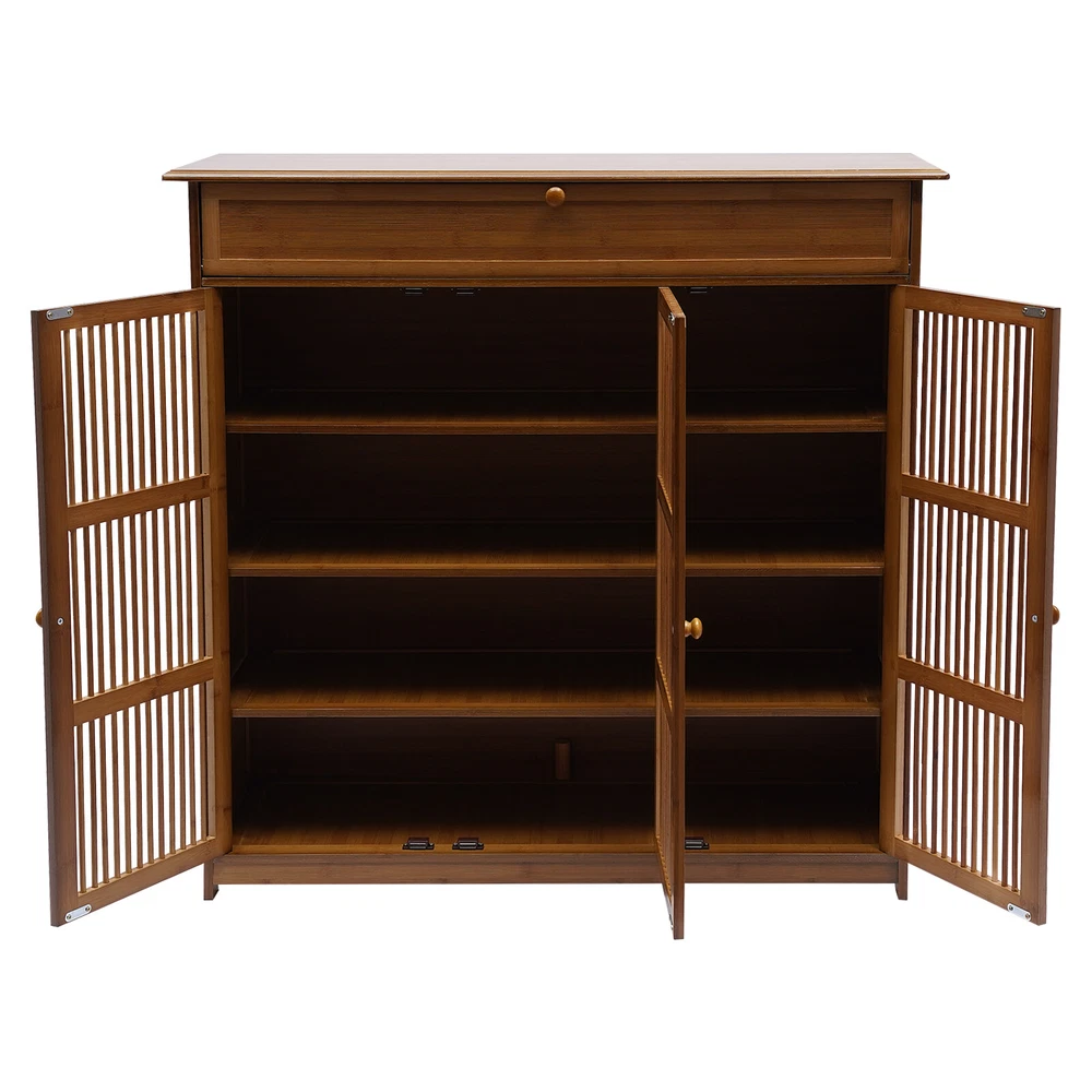 Bamboo Sideboard Buffet Storage Cabinet w/ 3 Doors Entryway Cabinet Shoe Rack