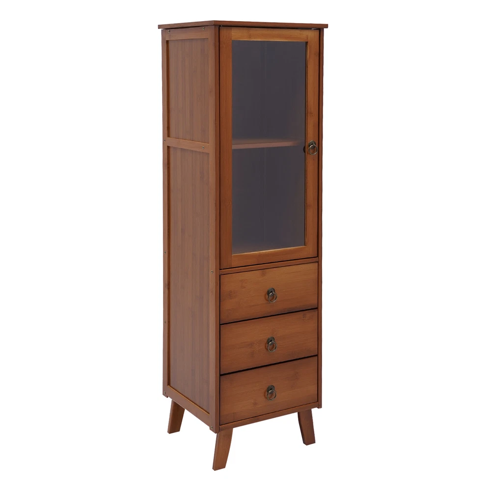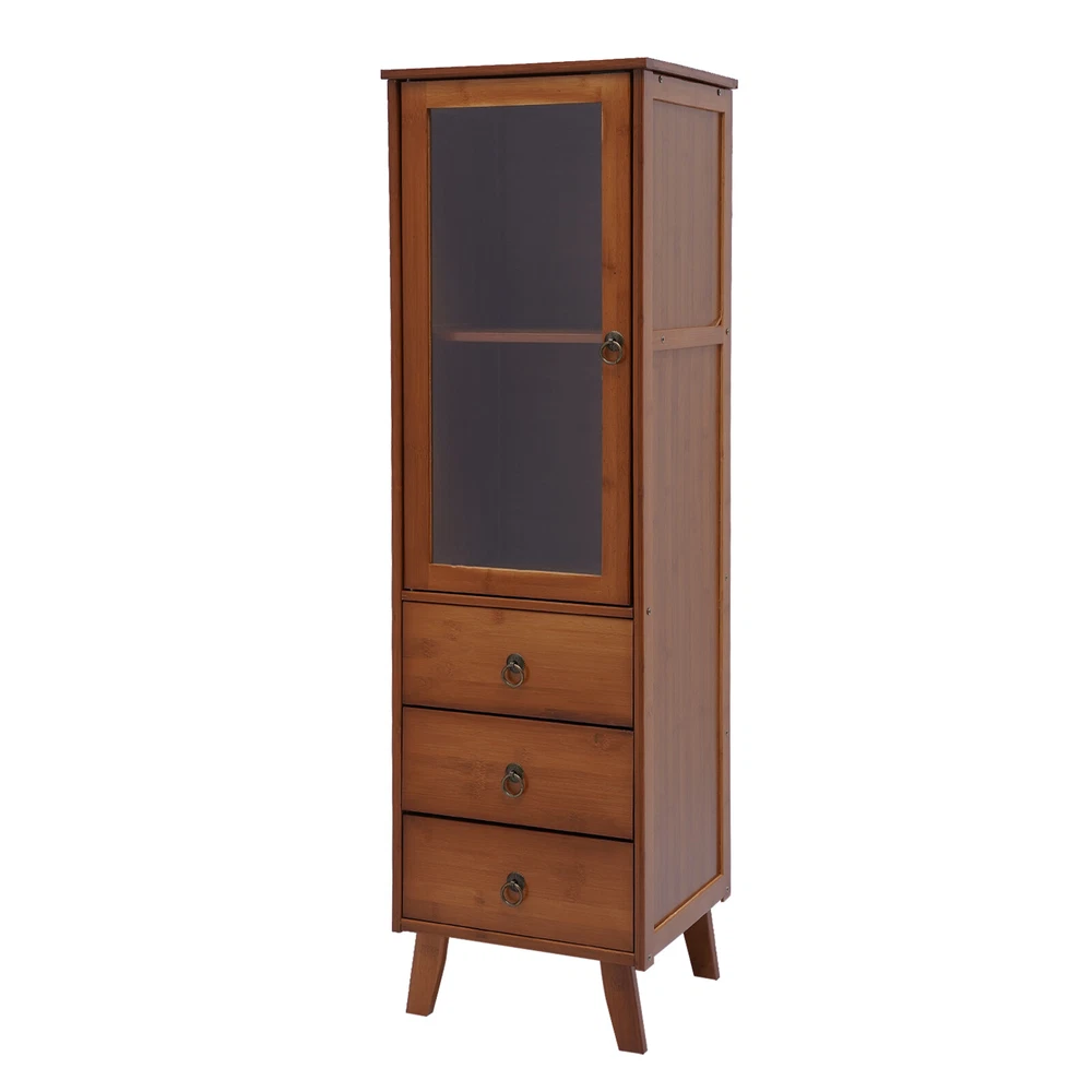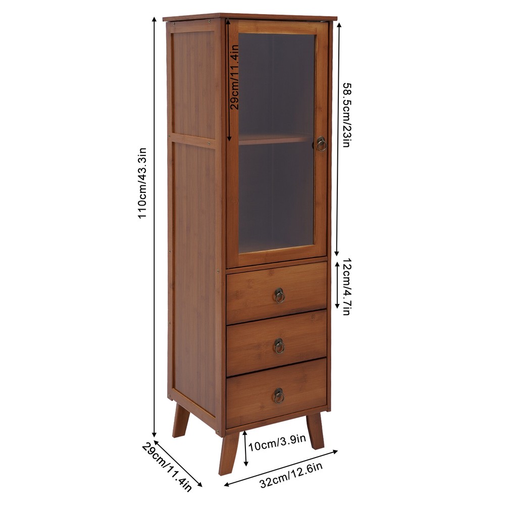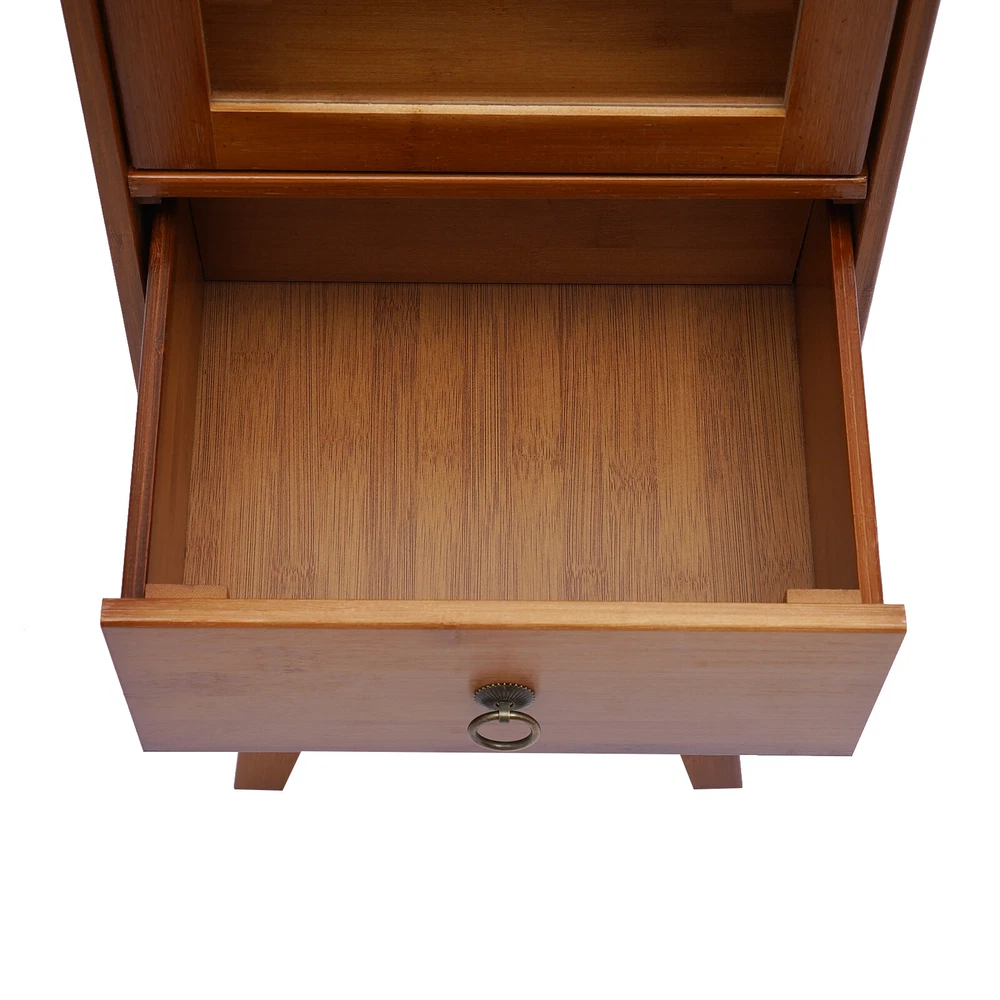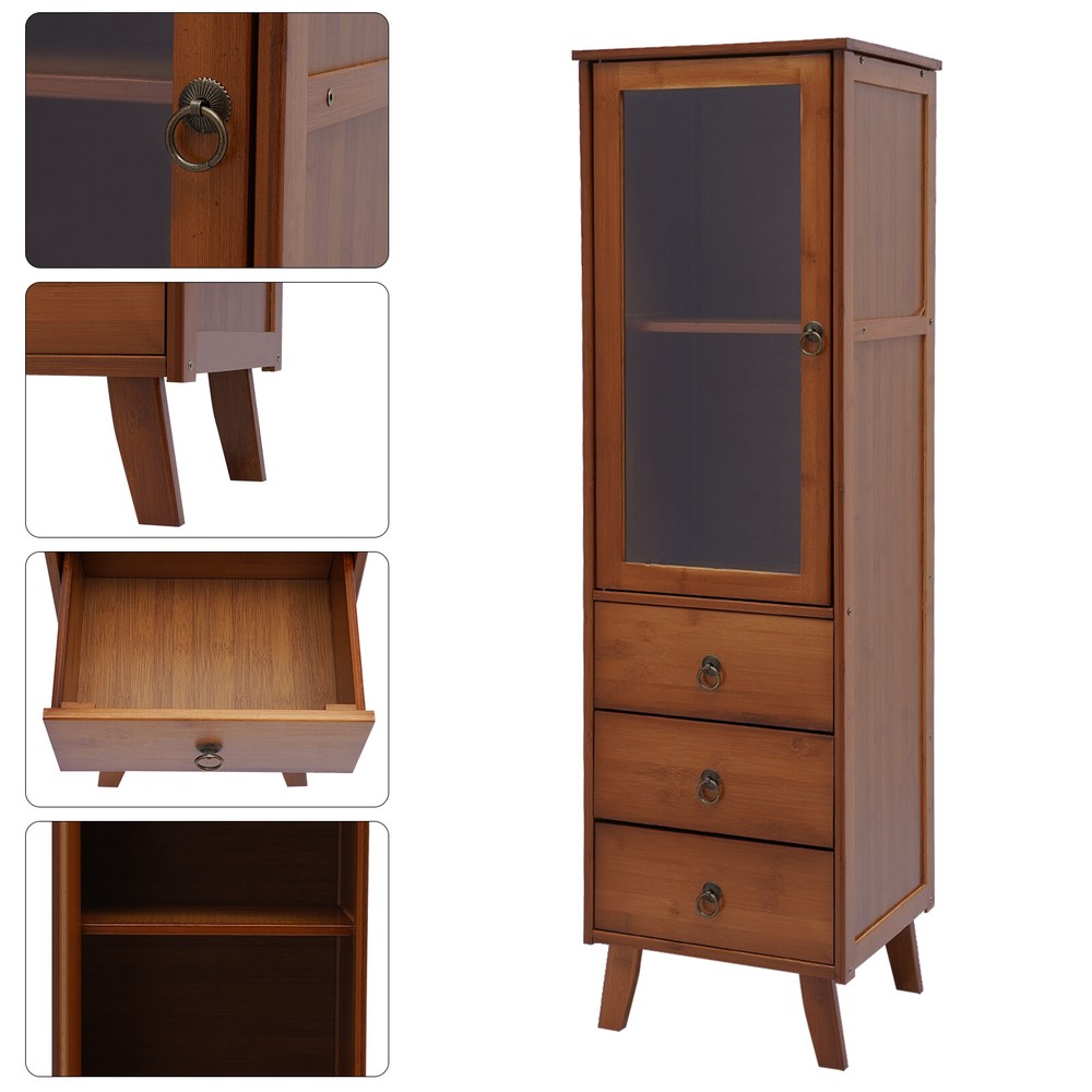 Bamboo Storage Cabinet with Drawers Freestanding Single-door Cupboard