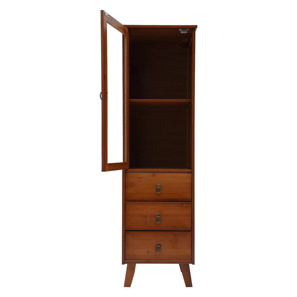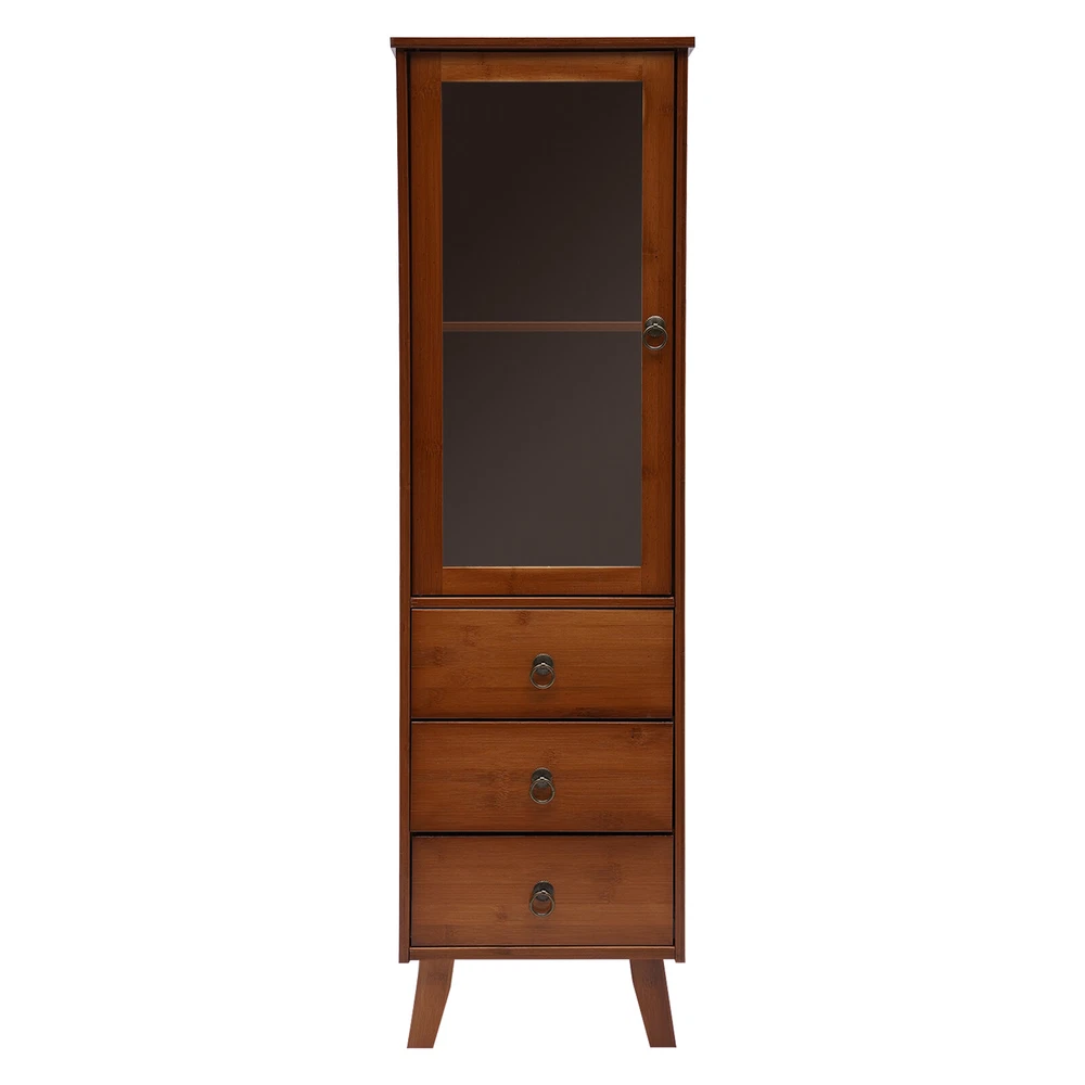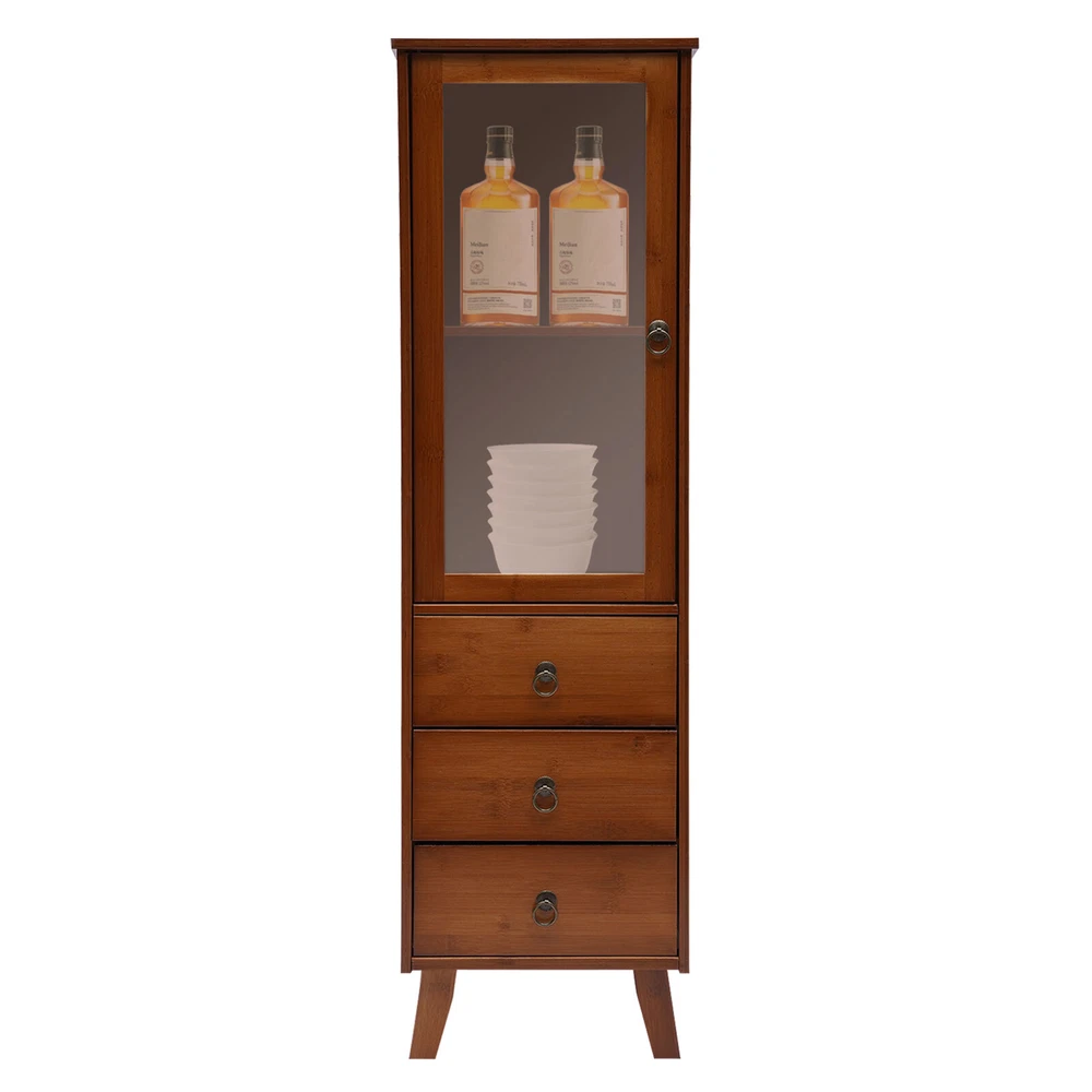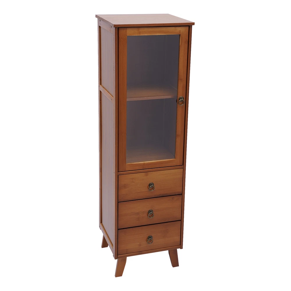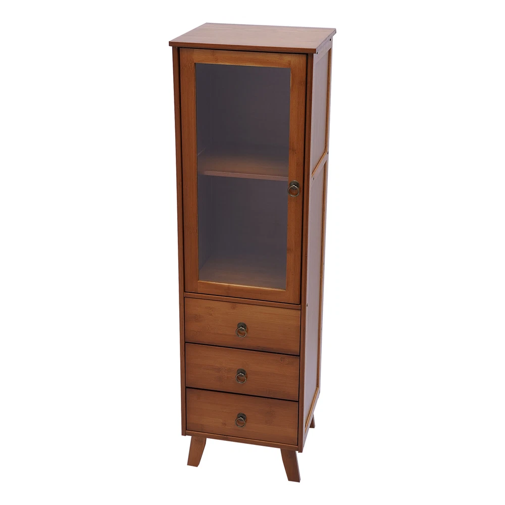 Bamboo Storage Cabinet with Drawers Freestanding Single-door Cupboard