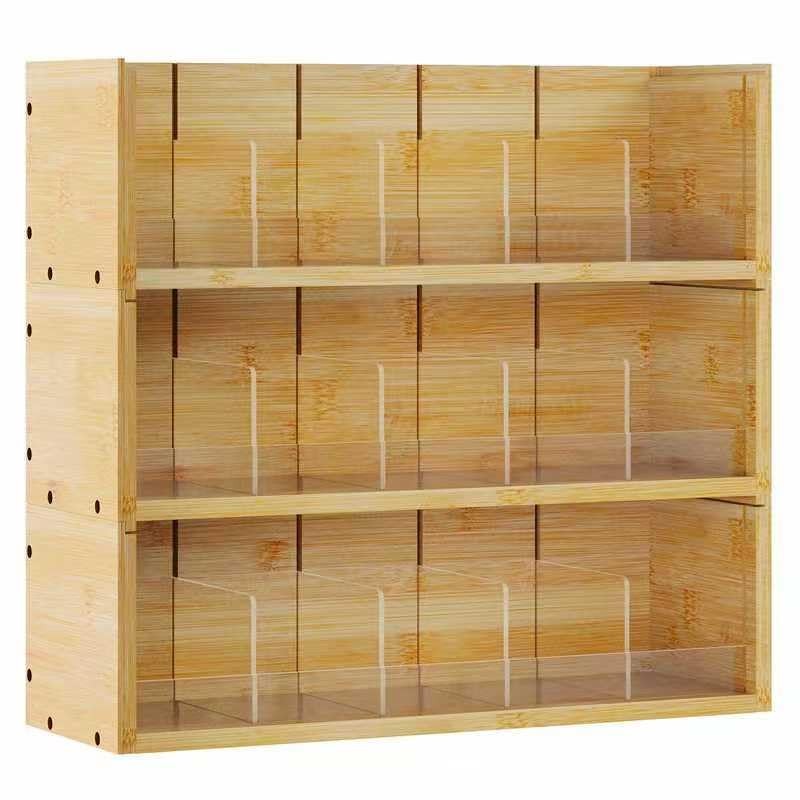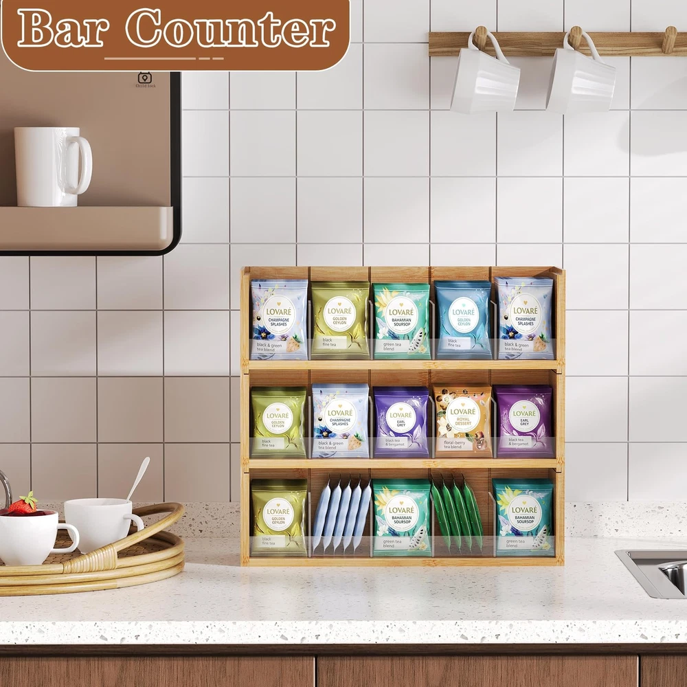 This Bamboo Tea Box features 15 compartments, where you can keep different varieties of tea bags. It allows you to arrange them systematically for easy tea assortment and view them through the see-through acrylic feature. 3-Tier-Stackable Storage Organizer to keep tea supplies, sugar packets, or coffee accessories organized on any table or countertop surface. You can put it on other desktops, not just in the kitchen cabinets. Ideal for storing a variety of bagged tea, sugar packets, or coffee accessories for anywhere in the kitchen, dining room, break room, or coffee shop. Made of high grade 100% natural bamboo, this Storage-Organizer is natural, sturdy and has long service life. The durable, smooth finish can well protect you and your family from being scratched. Paired with simple lines and literary pastoral style , it creates a elegant, rustic contrast for living room, bathroom, kitchen and balcony, adding brilliance to your room decor. -Acrylic comes with a protective film to avoid scratches. -Each layer can be wall mounted. Easy to hang on the wall with pre-drilled holes and included accessories. -Each basket has an open-front design for quick refilling. -Material: Bamboo -Compartment: 15 -Product Size: 13.9"H"*15"L *5"W Package: Tea bag holder*1(the product does not include tea bags) installation manual*1(Need to assemble) **【Needs Assembly】:Comes with assembly instructions and mounting screws. 【Easy & Stable Stacking】This tea organizer features a 3-layer design that can hold up to 300 tea bags. Each layer can be used individually or easily stacked together to meet your different needs. 【Adjustable Compartments】The tea bag holder features 3 layers, each with 5 individual storage sections for a total of 15 adjustable compartments. Each divider wall can be easily removed for custom compartment sizes. No need to worry about different sizes of tea bags. 【Smooth & Natural Bamboo】This tea storage box is made of sturdy bamboo and acrylic for long term use. Will never splinter and is water resistant. Stronger and harder than wood, Bamboo is also more durable and healthier than any acrylic. 【Special Transparent Design】Transparent acrylic divider will not block the view, perfect beauty to display the tea bags. You can more easily view the contents of the storage box without opening all the lids and find the taste you want accurately. 【Wall-mounted or Countertop】The tea bag organizer can be wall-mounted or used as a countertop display stand. It is easily and conveniently to install. All products come with 30-day money-back for any reason and 12-month for quality-related issues. Buy with confidence, we are always behind you.