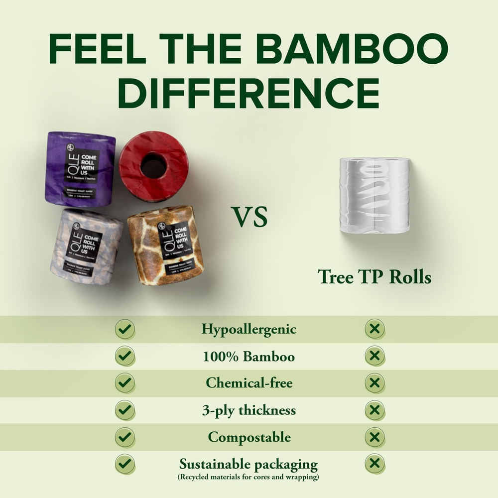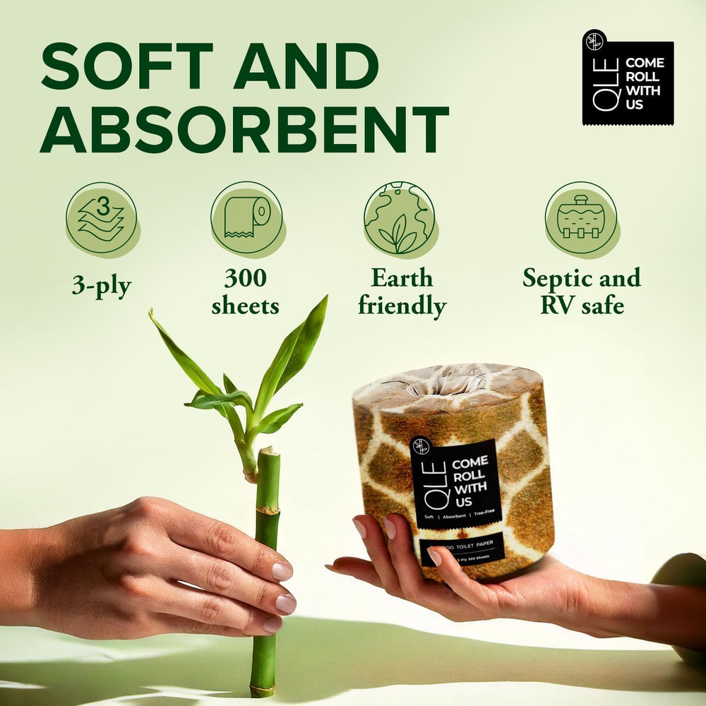 MADE FROM 100% BAMBOO PULP FOR A SUSTAINABLE CHOICE: Our bamboo toilet paper is crafted from renewable bamboo, helping reduce deforestation and protect the planet. With FSC certification and sustainable sourcing, you can trust this bamboo toliet paper to support ethical practices. Great for those seeking organic toilet paper chemical free, bamboo tissues, and compostable toilet paper for a greener lifestyle. HYPOALLERGENIC TOILET PAPER AND SAFE FOR SENSITIVE SKIN: QLE chemical free toilet paper non toxic is free from BPA, parabens, and artificial fragrances, making it gentle on delicate skin. It’s an ideal choice for families looking for toilet paper, non toxic toilet paper or organic bamboo toilet paper that’s soft and safe for everyone. Enjoy the peace of mind of using all natural toilet paper designed for comfort and wellness. 3 PLY THICKNESS FOR DURABILITY AND COMFORT: Offering 300 thick and soft sheets per roll, this soft bamboo toilet paper provides lasting comfort with less frequent roll changes. Whether you need bamboo pulp toilet paper rolls for home, travel, or a sustainable chemical free organic toilet paper option, its strength and absorbency deliver mess-free convenience. Ideal for those who value sustainable toilet paper that combines softness and reliability. SEPTIC-SAFE AND COMPOSTABLE FOR EASY DISPOSAL: This bamboo septic safe toilet paper is designed to break down quickly, making it a great choice for septic systems and composting. Our bamboo toilet tissue helps reduce waste while ensuring a clean and hassle-free experience. Choose natural toilet paper no chemicals that’s easy on your plumbing and the planet. PLASTIC FREE PACKAGING FOR ZERO WASTE LIVING: Individually wrapped toilet paper in plastic-free, recycled materials makes this product ideal for a zero waste lifestyle. Available in bulk or packs of 4 to 24, this bamboo toilet paper bulk is great for eco-conscious households. Embrace a sustainable, chemical free organic toilet paper that’s as good for the earth as it is for your family. Product description STRONG, ABSORBENT, AND DURABLE – THE IDEAL TOILET PAPER FOR EVERYDAY USE QLE Bamboo Toilet Paper combines maximum strength and absorbency, providing an effective clean every time. Made from sustainable bamboo, it offers a soft, comfortable feel while being gentle on the environment. Choose QLE for a reliable, eco-conscious bathroom experience. SOFT & STRONG BAMBOO TOILET PAPER – 100% SUSTAINABLE AND SEPTIC-SAFE QLE Bamboo Toilet Paper is the smart, sustainable choice for your home. Made from responsibly sourced bamboo, it’s 3-ply strong, soft, and highly absorbent. Each roll has 300 sheets and is septic-safe, RV-friendly, and planet-friendly. COMMITMENT TO SOCIAL RESPONSIBILITY AND SUSTAINABILITY QLE Toilet Paper is the planet-friendly choice for a cleaner world. Made from sustainable bamboo, it’s 100% BPA-free, PETA-approved, and vegan. Enjoy a soft, strong, and absorbent product that’s kind to the environment, providing comfort and peace of mind with every use. STOCK UP & SAVE MORE – PLANET-FRIENDLY BULK PACKS FOR MAXIMUM VALUE Choose QLE Toilet Paper in bulk packs of 4, 8, 16, or 24 rolls for convenience. Enjoy bamboo toilet paper made with sustainable materials, great for everyday use. Buying in bulk helps reduce packaging waste and ensures you always have a reliable supply. Stock up and make shopping easier today! THE SMART CHOICE FOR A SUSTAINABLE HOME Add to Cart Add to Cart Add to Cart Add to Cart Customer Reviews 4.2 out of 5 stars 422 4.2 out of 5 stars 29 4.3 out of 5 stars 31 4.4 out of 5 stars 30 Price $10.99 $ 10 . 99 $20.98 $ 20 . 98 $31.99 $ 31 . 99 $41.99 $ 41 . 99 Soft & Comfortable ✔ ✔ ✔ ✔ Sustainable ✔ ✔ ✔ ✔ 300 Sheets Per Roll ✔ ✔ ✔ ✔ Cost-Effective ✘ ✔ ✔ ✔ Septic Safe ✔ ✔ ✔ ✔ Ideal for High Traffic Areas ✘ ✔ ✔ ✔ 100% Bamboo & Sustainable Our bamboo toilet paper is made from sustainably sourced bamboo, helping reduce deforestation while offering a soft, strong, and reliable alternative to traditional paper. Free from harsh chemicals, it’s gentle on the skin and safe for septic systems, making it a responsible choice for households that care about sustainability. Ultra-Soft & Gentle Experience the comfort of bamboo soft toilet paper with a plush, velvety feel that’s great for sensitive skin. Unlike rough conventional paper, our bamboo toilet paper 3-ply ultra soft is designed for maximum comfort while remaining strong and absorbent. 3-Ply for Strength Our 3-ply toilet paper is crafted for ultimate durability and reliability. Each sheet is thick, strong, and highly absorbent, ensuring a superior clean with every use. Great for families, our bamboo toilet paper rolls provide long-lasting performance. Hypoallergenic & Chemical-Free Say goodbye to irritation! Our chemical free toilet paper contains no dyes, fragrances, or harsh chemicals, making it safe for the most sensitive skin. Choose hypoallergenic toilet paper that delivers a natural, soothing clean without compromise. Septic & RV Safe Our septic-friendly toilet paper dissolves quickly, preventing clogs in septic tanks, RVs, and boats. Designed for efficiency and sustainability, this rv toilet paper is a must-have for campers, travelers, and off-grid living. Highly Absorbent Made with dense, ultra-absorbent fibers, our bamboo toilet paper ensures fewer sheets per use while providing superior performance. The 3-ply toilet paper design locks in moisture efficiently, making every roll last longer. Plastic-Free Packaging Our toilet paper bamboo soft comes wrapped in 100% recyclable packaging—no plastic, no waste. Designed for a greener lifestyle, this toilet paper sustainable is the perfect eco-conscious choice for homes that care about the environment. Bulk Pack Savings Stock up and save with our toilet paper 4 pack or larger bulk options! Whether for home or business, our bamboo toilet paper rolls offer long-lasting conv