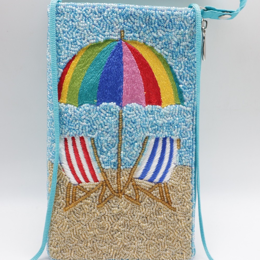 The Bamboo Trading Company Cell Phone or Club Bag in the style of Beach Chairs is a versatile accessory designed for women. This one-size bag, featuring a multicolor design, is perfect for carrying your cell phone or other small essentials while on the go. With a beach theme and vibrant colors, this bag is ideal for adding a touch of fun to your outfit. Perfect for a day at the beach or a casual outing, this bag from the Bamboo Trading Company is both stylish and functional.