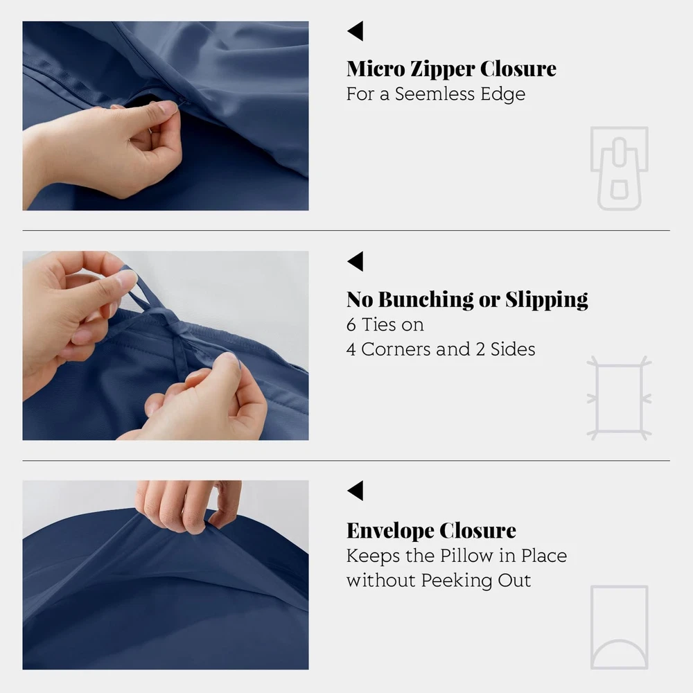 This duvet cover set is a game-changer! The bamboo-derived viscose feels incredibly soft and keeps me cool all night—perfect for hot sleepers. The fabric is breathable, moisture-wicking, and stays fresh. Love the secure zipper closure and corner ties that keep the comforter in place. Plus, it’s OEKO-TEX certified, so I can sleep worry-free. Highly recommend for anyone wanting comfort and sustainability!