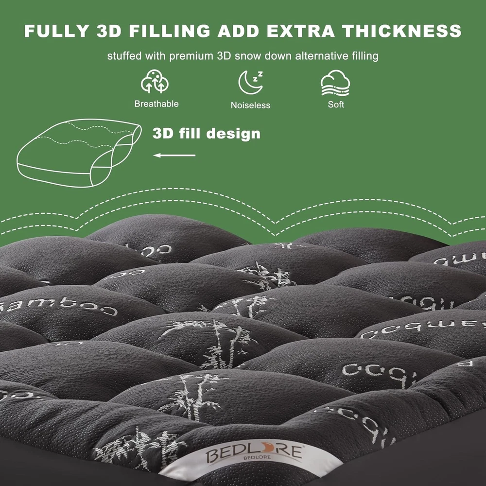 Bamboo Viscose Cooling Mattress Topper King Size Quilted Fitted Cover 8-21 Inch Pocket