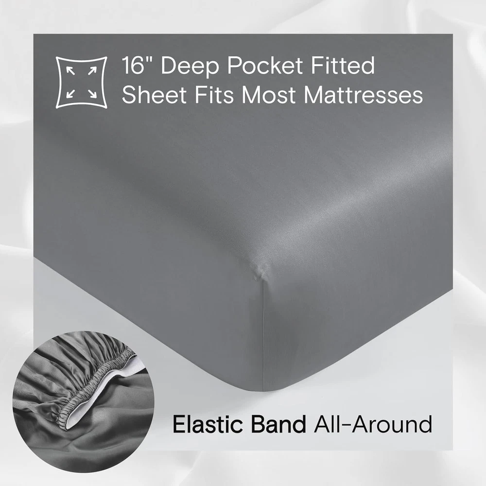 These sheets are a dream! Super soft, breathable, and stay cool all night—perfect for hot sleepers. The deep pockets fit my thick mattress snugly, and the storm gray color looks elegant. Love that they’re eco-friendly and stain-resistant too. Worth every penny!