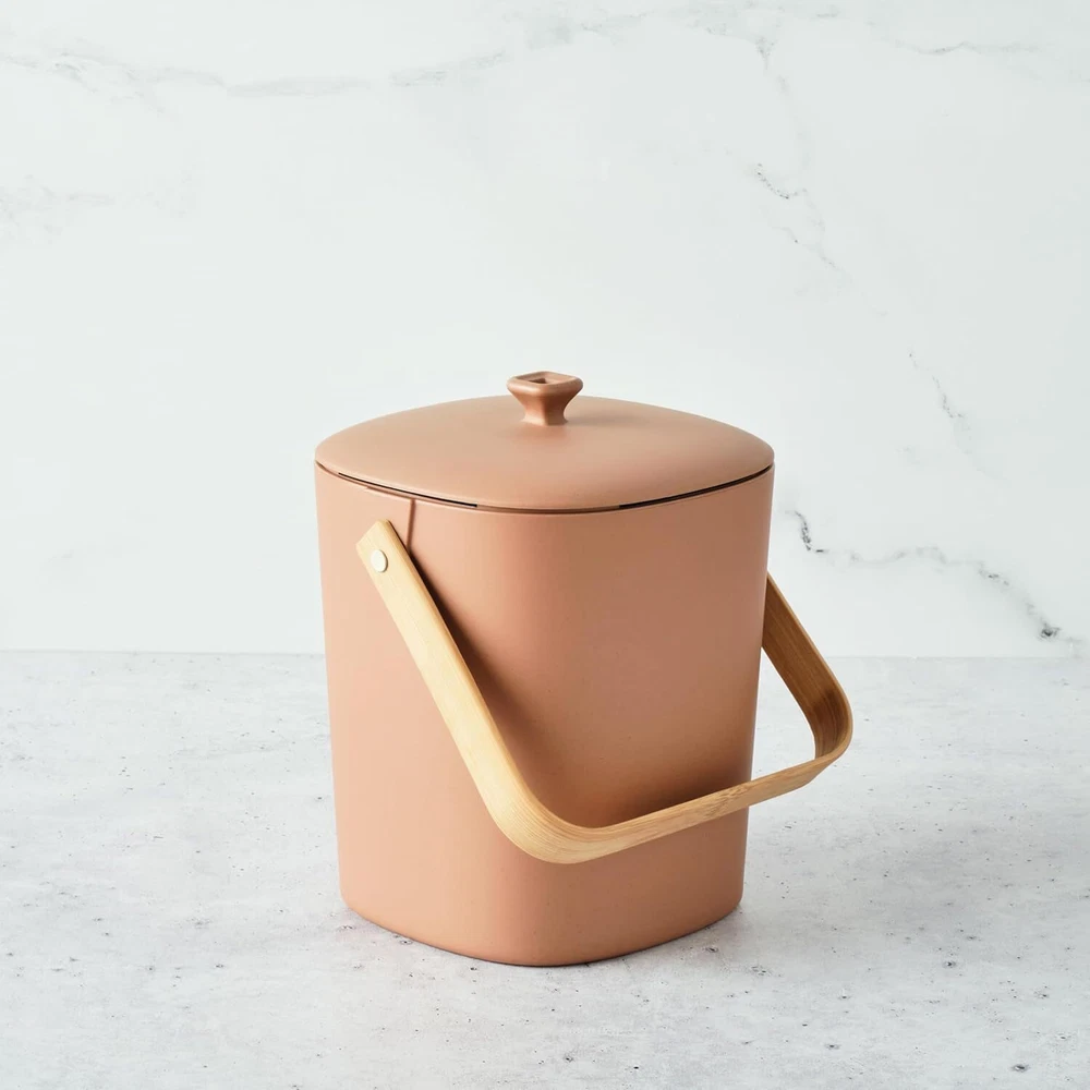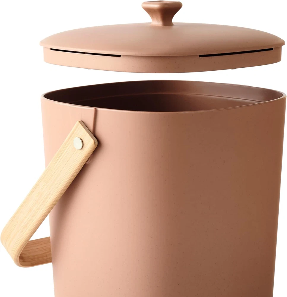 Material Bamboo Color Terracotta-Astrik Brand Bamboozle Capacity 1 Gallons Product Dimensions 7.25"L x 7.25"W x 9"H Shape Cylindrical UPC 810072641984 Manufacturer Bamboozle See less About this item CONVENIENT DESIGN: This compost bin has been thoughtfully designed to manage natural decomposition at home. The decomposing bin converts organic matter into garden compost that can be used for enriching the soil mix. NATURE FRIENDLY: This natural garbage bin is made of sustainable Astrik material to reduce the impact on the planet. It will help you utilize regular kitchen waste like fruit peel, food leftovers, and other organic items to create compost at home. EFFECTIVE COMPOSTING: Designed to help you adopt a greener lifestyle, this reusable compost bin comes with hemp-based filters to control the odor and speed up the composting process. It can be a great gifting idea for a gardener or a green home enthusiast! EASY DISPOSAL: Made with durable and dishwasher-safe materials, this bamboo compost bin has a sleek design for convenient usage. Remove the lid to dispose of kitchen scraps for a hygienic composting experience. PRODUCT SPECIFICATIONS: Bamboozle Compact Compost Bin is supplied in a pack of one with 2 replaceable hemp-based filters. Each bin measures 8.75 x 7 x 7 inch. It offers a modern solution to compost at home and ensure that your home contributes less to the landfill sites. Product information Material Bamboo Color Terracotta-Astrik Brand Bamboozle Capacity 1 Gallons Product Dimensions 7.25"L x 7.25"W x 9"H Shape Cylindrical UPC 810072641984 Manufacturer Bamboozle Item Weight 2.44 pounds ASIN B0D7QZ3T8P Country of Origin China Item model number 810072641984 On Jan 23, 2025 at 14:19:02 PST, seller added the following information: On Feb 10, 2025 at 20:11:23 PST, seller added the following information: