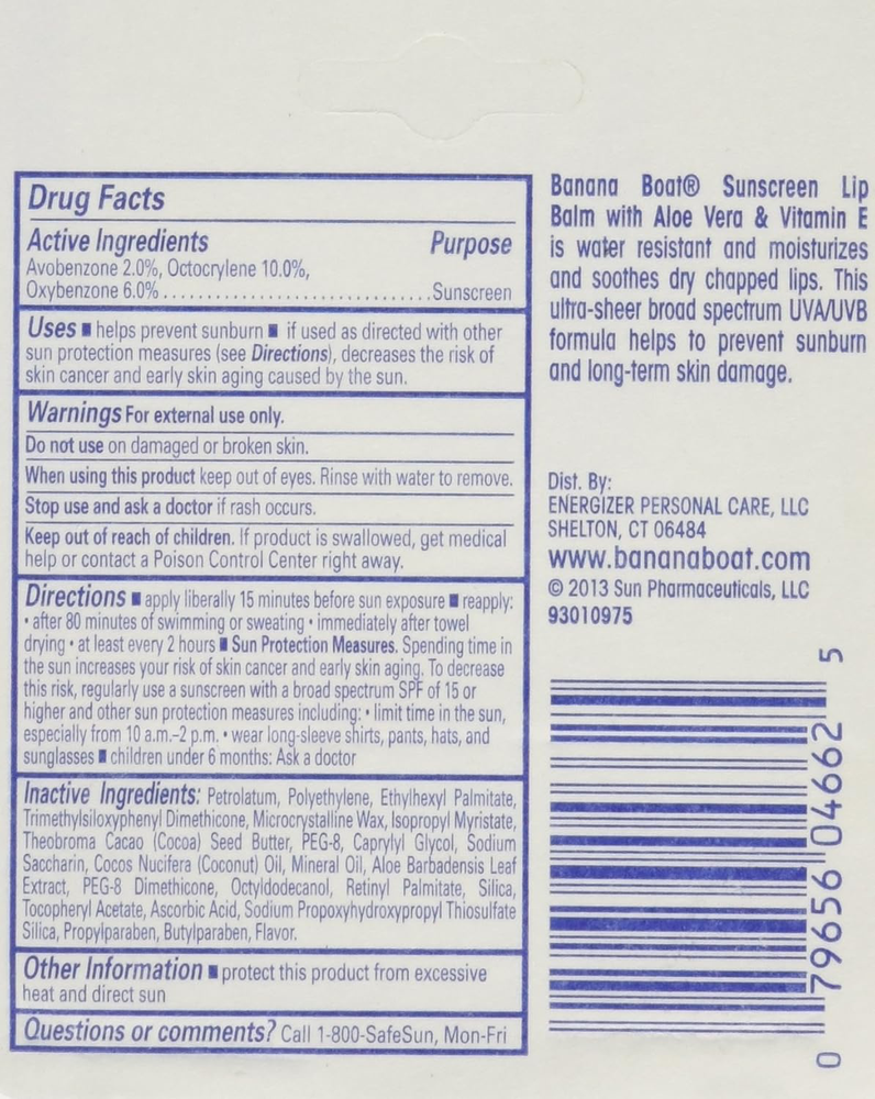Fast Shipping Great Customer Support Satisfaction Guaranteed DESCRIPTION Shipping Shipping Shipping All domestic packages are shipped for Free (Unless other shipping method was selected during the checkout) Most items ship and arrive much sooner than the estimate delivery date. Usually within 2-3 days from payment. However, we have longer estimates to compensate for the occasional delay or supply chain breakdown. We do not accept P.O. BOXES - PLEASE PROVIDE A PHYSICAL ADDRESS Return Return Return In the event that you would like to return your purchase, we allow returns that are processed within the defined return date (the return date is to be found in the return policy/shipping and handling section) Please contact us for a return authorization and the return shipping address. Payment Payment Payment PayPal is our preferred method of payments it's the quickest, easiest and most secure way to pay for your goods or services online. PayPal offers buyer and seller protection should there be a problem. If you do not have a PayPal account, to get started and buy your first item with us is very easy. Simply click on the 'Buy It Now' button and follow the eBay checkout steps. Select PayPal as the payment method you then will be given the chance to enter your card details in to PayPal's secure checkout in order to pay for your order. Once the payment has been made, you will then be given the opportunity to make your own PayPal account to make paying for your items in the future very easy. Should there be a problem with payment please do let us know. Feedback Feedback Feedback Customer satisfaction is very important to us. If you have any problem with your order,please contact us and we will do our best to make you satisfied, please do not leave a negative feedback before we resolve your problem. We guarantee that your issue will be solved quickly. As long as you are happy with your purchase of , please leave us a positive feedback. Your feedback is very important to us it affects our search placement on eBay. We will leave a positive feedback for you in return automatically once we receive your feedback. Contact Us Contact Us Contact Us If you have any queries, please contact us via ebay. We usually respond within 24 hours on weekdays. Thank you for visiting our ebay store! Pack of 3 (815125) Pack of 3 (815125) Banana Boat Aloe Vera Lip Balm SPF 45 with Vitamin E 3-Pack Click here to see description Fast Shipping Great Customer Support Satisfaction Guaranteed DESCRIPTION Shipping All domestic packages are shipped for Free (Unless other shipping method was selected during the checkout) We ship within two business days of payment, usually sooner Standard FREE shipping takes between 3-5 business days Expedited shipping takes between 2-3 business days Overnight shipping takes between 1-2 business days We do not accept P.O. BOXES - PLEASE PROVIDE A PHYSICAL ADDRESS We Ship Globally using ebay's GSP, the item is sent to a logistic center in KY and shipped from there to the rest of the world. International customers are responsible for all duties and taxes Contact your local authority for questions related to the amount of duties or taxes you will be responsible for Return In the event that you would like to return your purchase, we allow returns that are processed within the defined return date (the return date is to be found in the return policy/shipping and handling section) Please contact us for a return authorization and the return shipping address. Please contact us for a Return Merchandise Authorization (RMA) number. We advise you to use a reputable carrier service when returning your goods. Please pack all returns appropriately. We ship globally Via eBay's global shipping program (GSP). Thus we don't cover returns for items shipped globally. Buyers returning such items will be refunded ONLY for the item's cost and not for the shipping. please check the Voltage information and make sure it matches the one in your country. In case it's not stated in the description, do ask us. Payment PayPal is our preferred method of payments it's the quickest, easiest and most secure way to pay for your goods or services online. PayPal offers buyer and seller protection should there be a problem. If you do not have a PayPal account, to get started and buy your first item with us is very easy. Simply click on the 'Buy It Now' button and follow the eBay checkout steps. Select PayPal as the payment method you then will be given the chance to enter your card details in to PayPal's secure checkout in order to pay for your order. Once the payment has been made, you will then be given the opportunity to make your own PayPal account to make paying for your items in the future very easy. Should there be a problem with payment please do let us know. Feedback Customer satisfaction is very important to us. If you have any problem with your order,please contact us and we will do our best to make you satisfied, please do not leave a negative feedback before we resolve your problem. We guarantee that your issue will be solved quickly. As long as you are happy with your purchase of , please leave us a positive feedback. Your feedback is very important to us it affects our search placement on eBay. We will leave a positive feedback for you in return automatically once we receive your feedback. Contact Us If you have any queries, please contact us via ebay. We usually respond within 24 hours on weekdays. Thank you for visiting our ebay store! Pack of 3 (815125) Pack of 3 (815125) Banana Boat Aloe Vera Lip Balm SPF 45 with Vitamin E 3-Pack