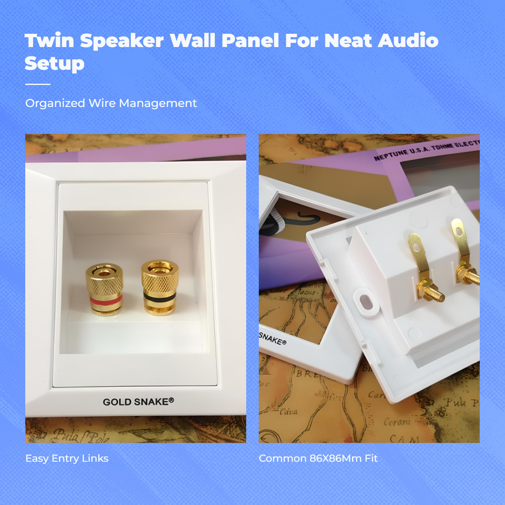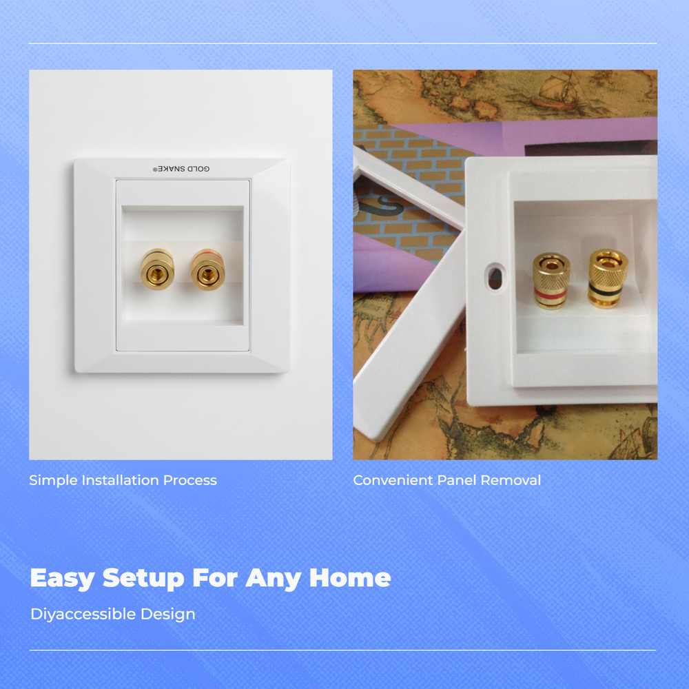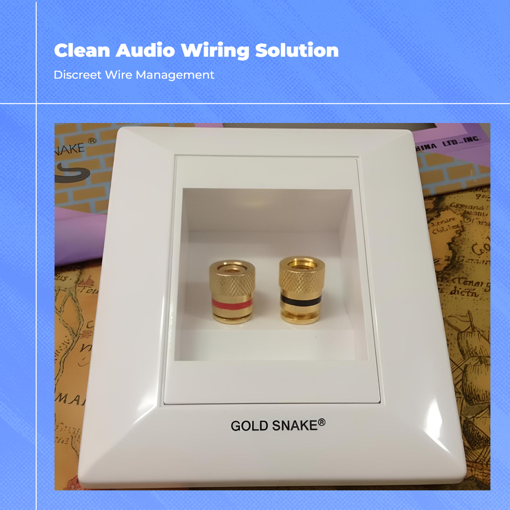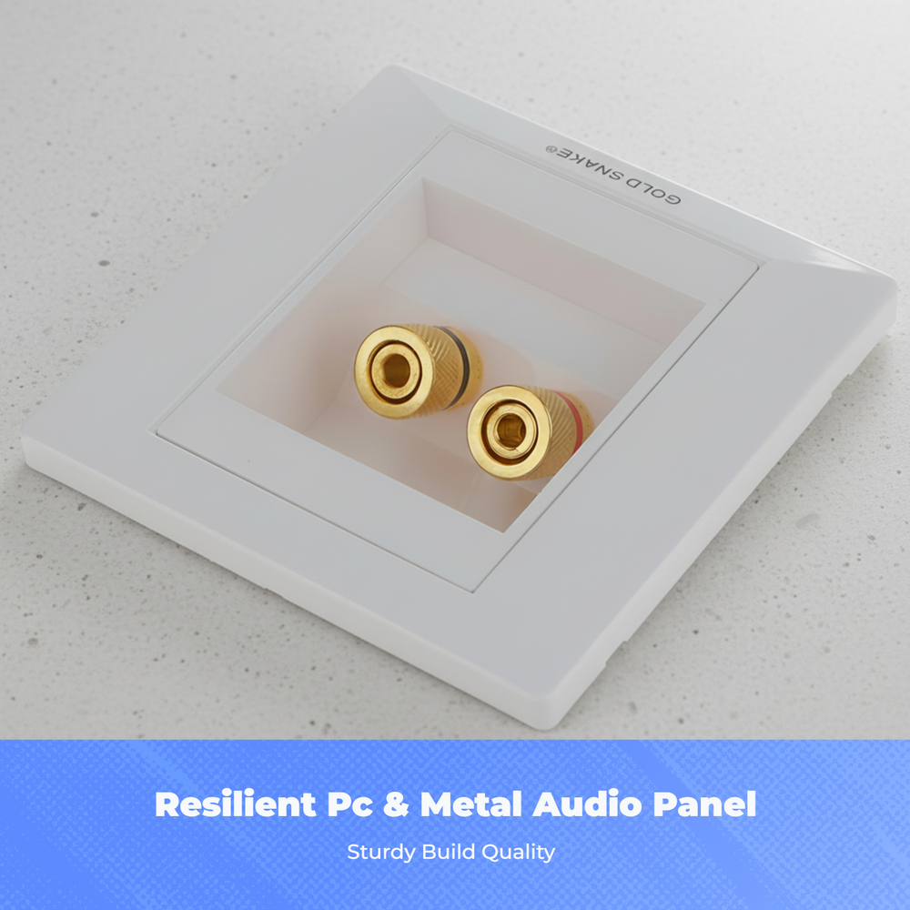 This audio wall face plate provides a clean and simple solution for your in-wall speaker wiring. It is designed to fit a standard single back box with its 85mm x 85mm dimensions, ensuring a flush and professional-looking installation. The plate features two binding posts, which are compatible with standard banana plugs, allowing for easy and secure connections for your speaker system. Installation involves running your speaker cable through the wall and connecting it to the solder tags on the rear of the panel. For the most secure and reliable connection, soldering the wires to the tags is recommended. This setup helps to eliminate messy cables and creates a tidy home theater or audio environment. Specifications: Type: 2 Binding Post Audio Wall Plate Dimensions: 85 x 85 x 30 mm (3.35 x 3.35 x 1.18 inch) Material: Metal and Plastic Compatibility: Banana Plugs, Single Back Box Package Includes: 1 x 2 Binding Post Audio Wall Panel 2 x Mounting Screws