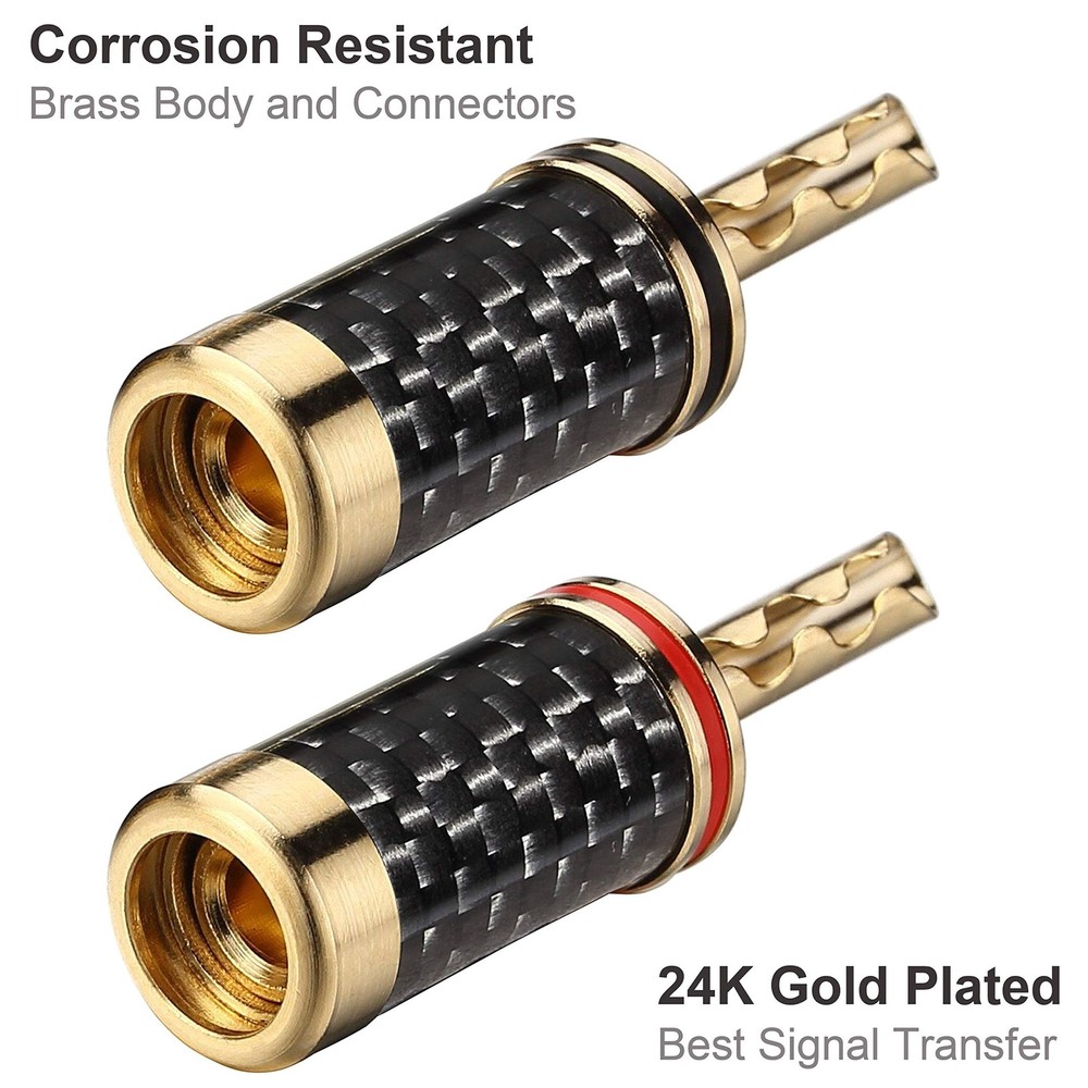 Banana Plugs 5pairs (10pcs) 24k Gold Plated BFA Speaker Plug connectors for HiFi Speaker Wire Product Details Size: BFA Color: 5 Pairs Brand: Freajoin MPN: FBN25805 UPC: Does not apply EAN: Does not apply Brand: Freajoin Connector Type: Brca Compatible Devices: Speaker Special Feature: Magnetic Color: 5 Pairs Brand: Freajoin Connector Type: Brca Compatible Devices: Speaker Special Feature: Magnetic Color: 5 Pairs Shape: Round Indoor/Outdoor Usage: Indoor, Outdoor Customer Package Type: Standard Packaging Manufacturer: Freajoin Package Dimensions: 6.7 x 4.7 x 0.7 inches Item Weight: 2.39 ounces Item model number: FBN25805 Date First Available: February 5, 2020 5 pairs of banana plugs (10 plugs total) for easily installing speakers Brass Conductor, Gold plated for best signal transfer and Corrosion Resistance Brass Housing with Carbon Fiber Coating, which offers high corrosion resistance and effective electromagnetic shielding Accepts Multiple Sizes of Speaker Wires, Compatible with 10 AWG to 18 AWG speaker wires BFA Type Design with Increased Contact Surface for High Performance, Dual Screw Locking Install type Assure the Wire Connection Secure
