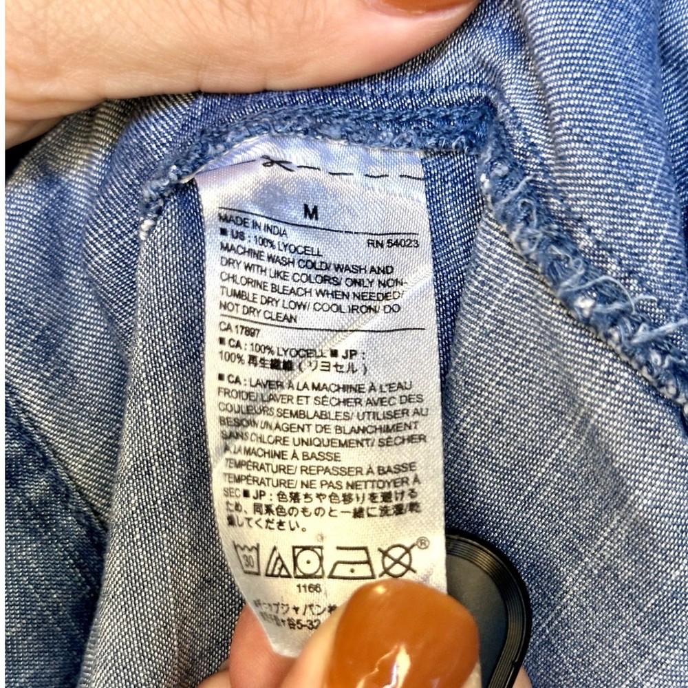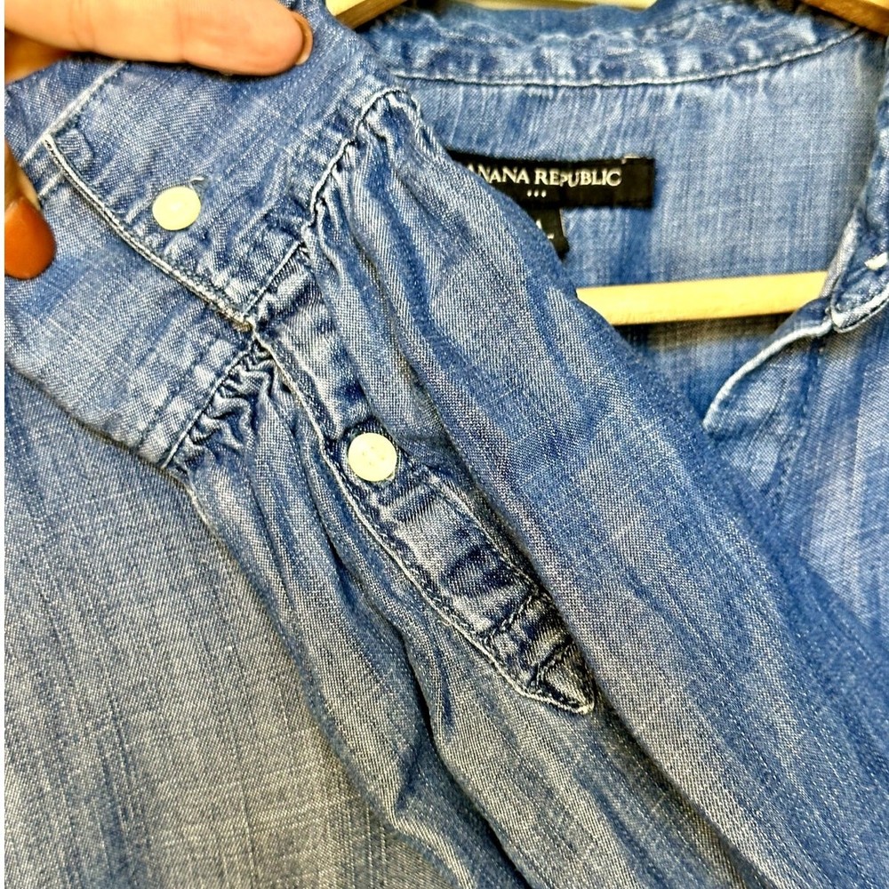 Banana Republic Women S 100% Lyocell Classic Blue Denim Chambray Button Down Top Pet to pit 20 inches shoulder to wrist 24 inches overall length 26 inches see photos for additional condition information