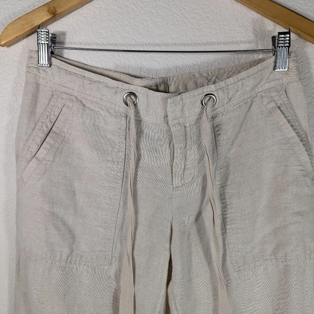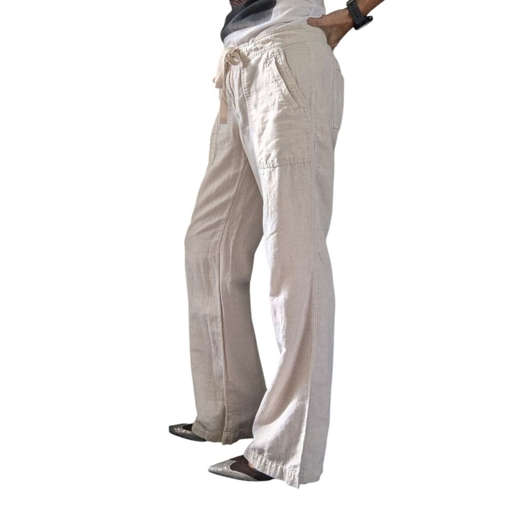Banana Republic Martin Fit Linen Cotton Straight Leg Slacks Pants Size 4 Drawstring waist with hook/eye, zip closure Double hip pockets & 2 back pockets Lightweight and has some shearness Approximate measurements (laid flat): • Size: 4 • Waist: 15” • Length: 39” • Color: cream / ivory • Material: 55% linen & 45% cotton • Condition: pre-owned; excellent pre-loved condition, no tears or stains – see photos for condition • RN #: 54023 Ships next business day. Offers welcome! keywords: cottagecore, cotton, linen, business casual, Summer, Spring, neutral, preppy, girlhoodcore, coquette girl, minimalist, office, workwear, day date, cute, versatile, beach, vacation