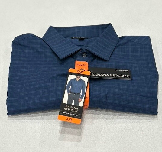 Banana Republic Men's Non-Iron Slim Fit Dress Shirt Size: XX-Large Color: Dark Blue Content: 100% Cotton