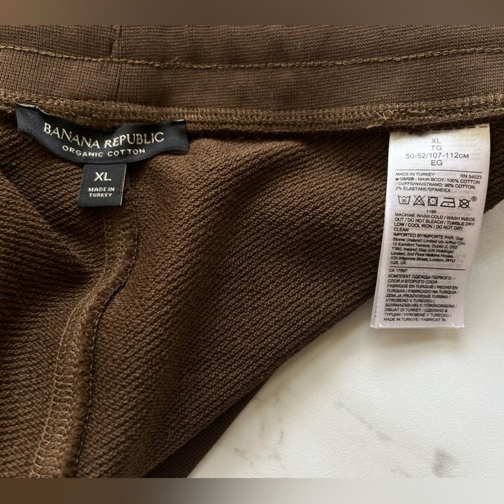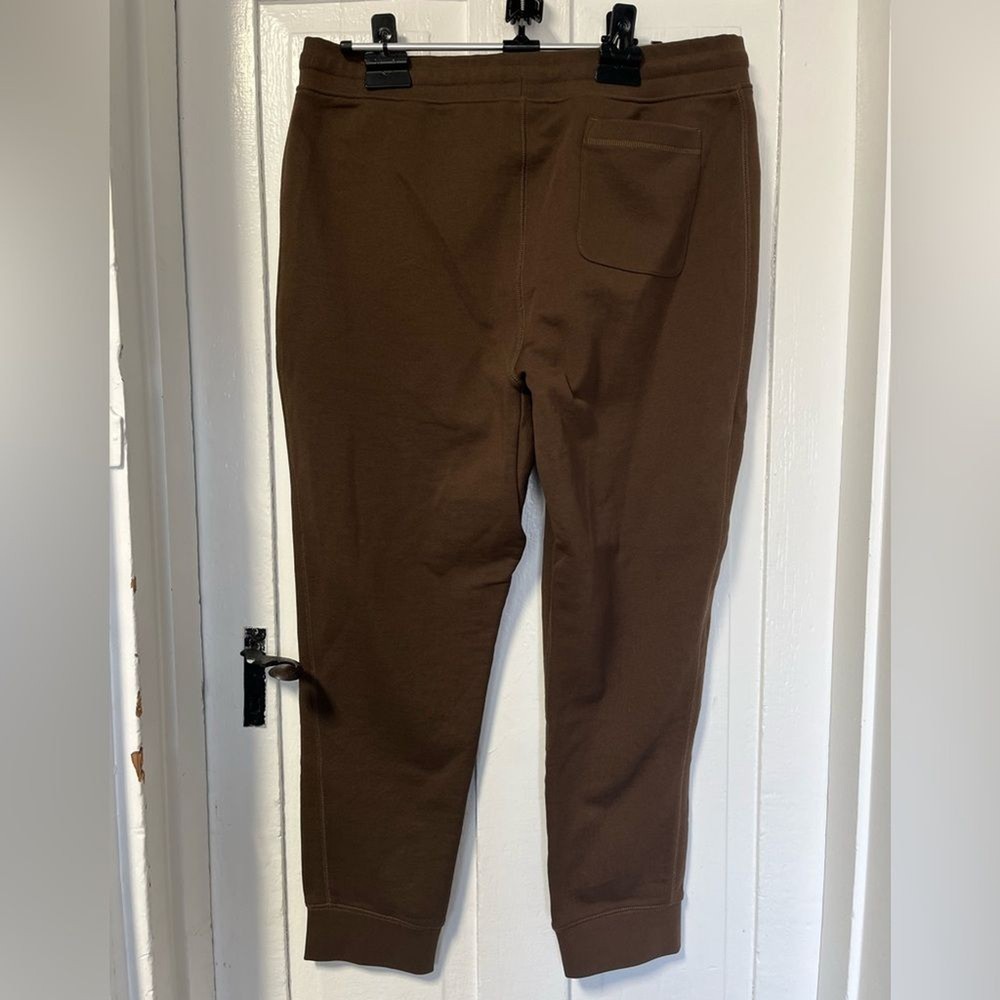 Slant pockets With single back pocket Drawstring waist Jogger style Organic cotton Excellent preloved condition no holes or major visible staining Smoke Free Dog Friendly Home Please be aware to expect a slight variation in color due to lighting and your device screen settings . Bin A