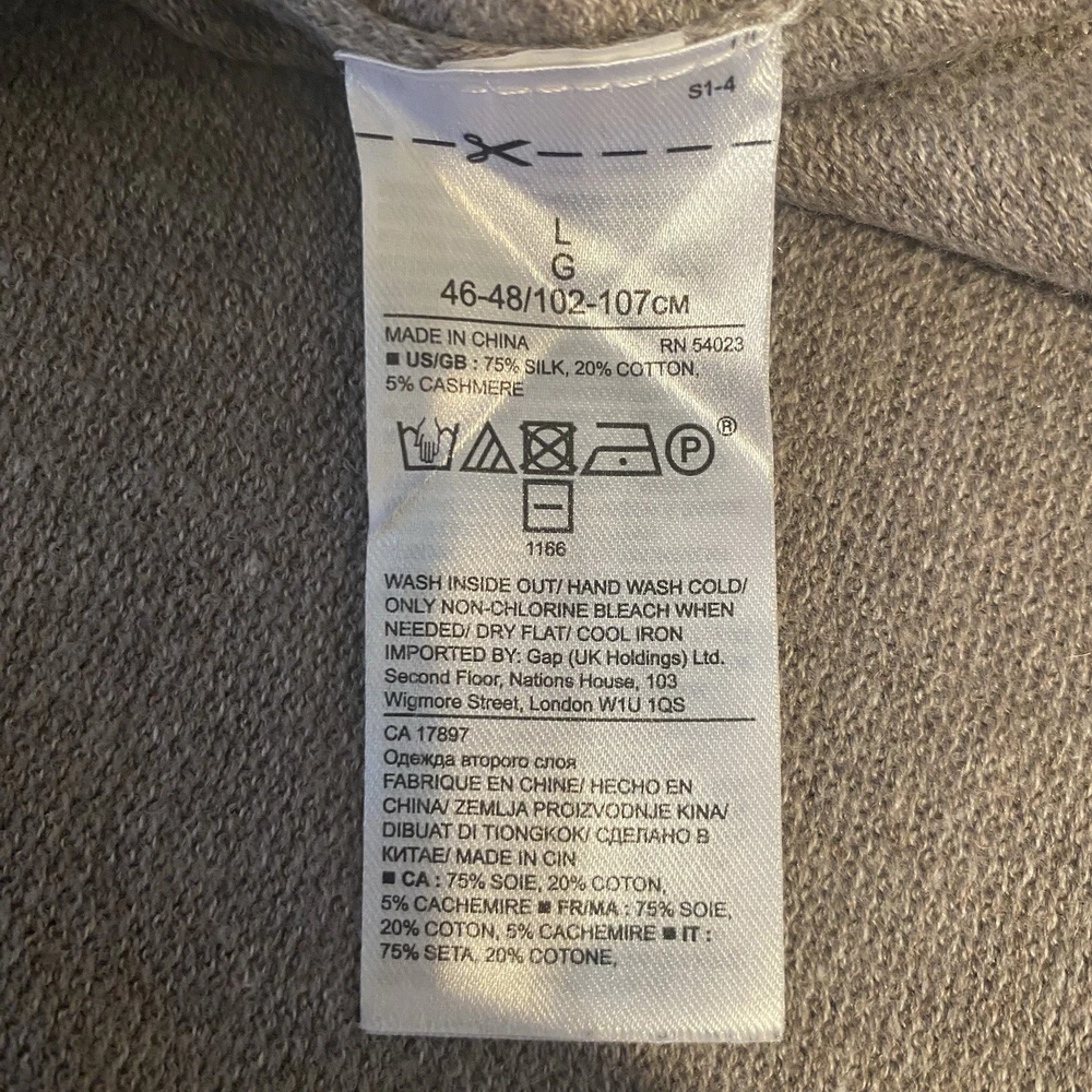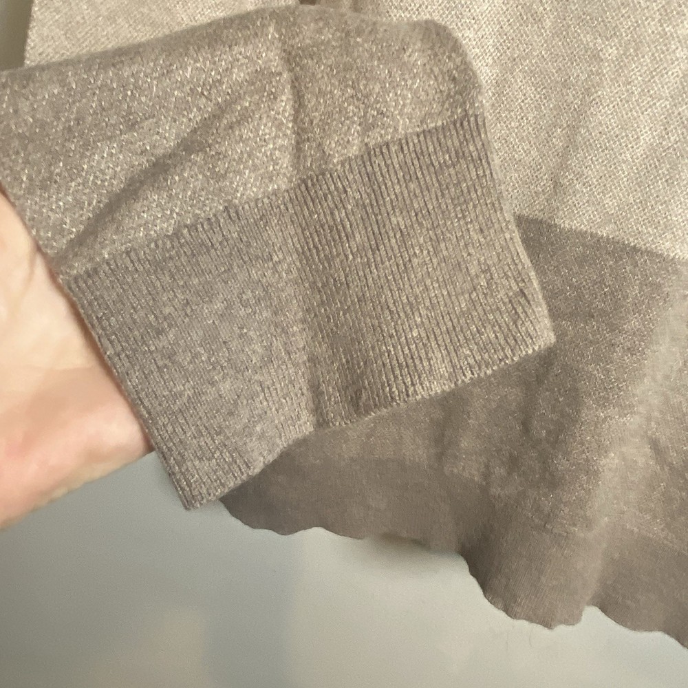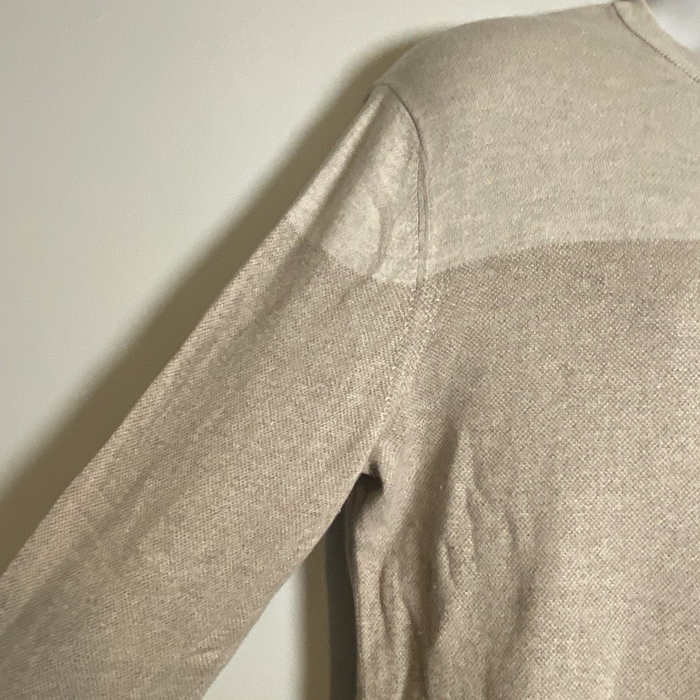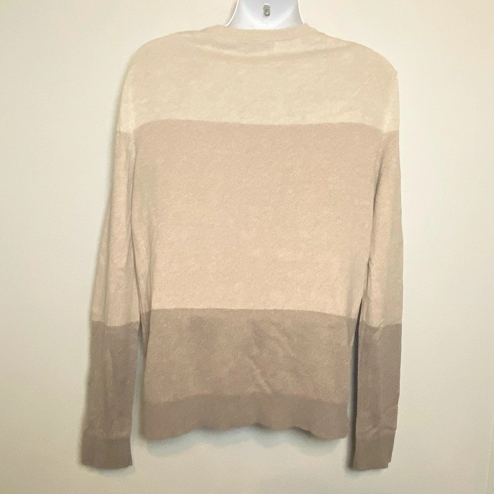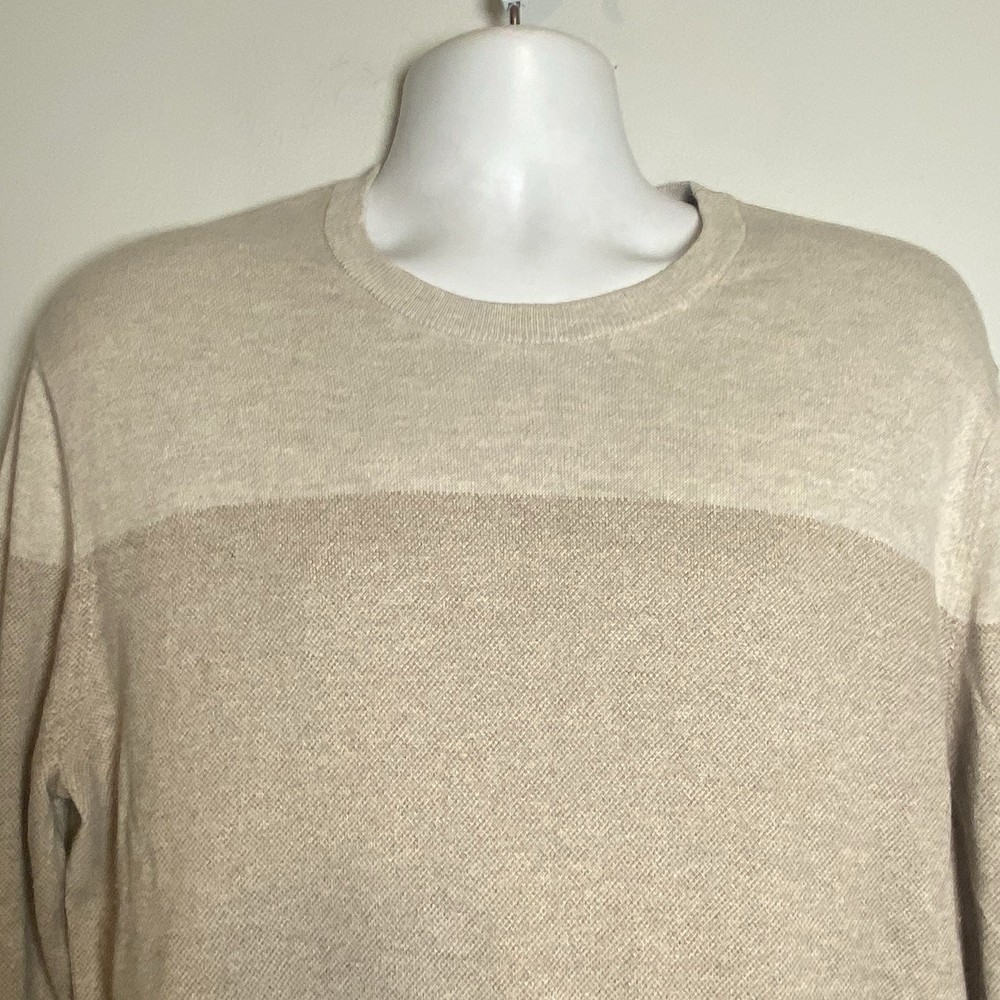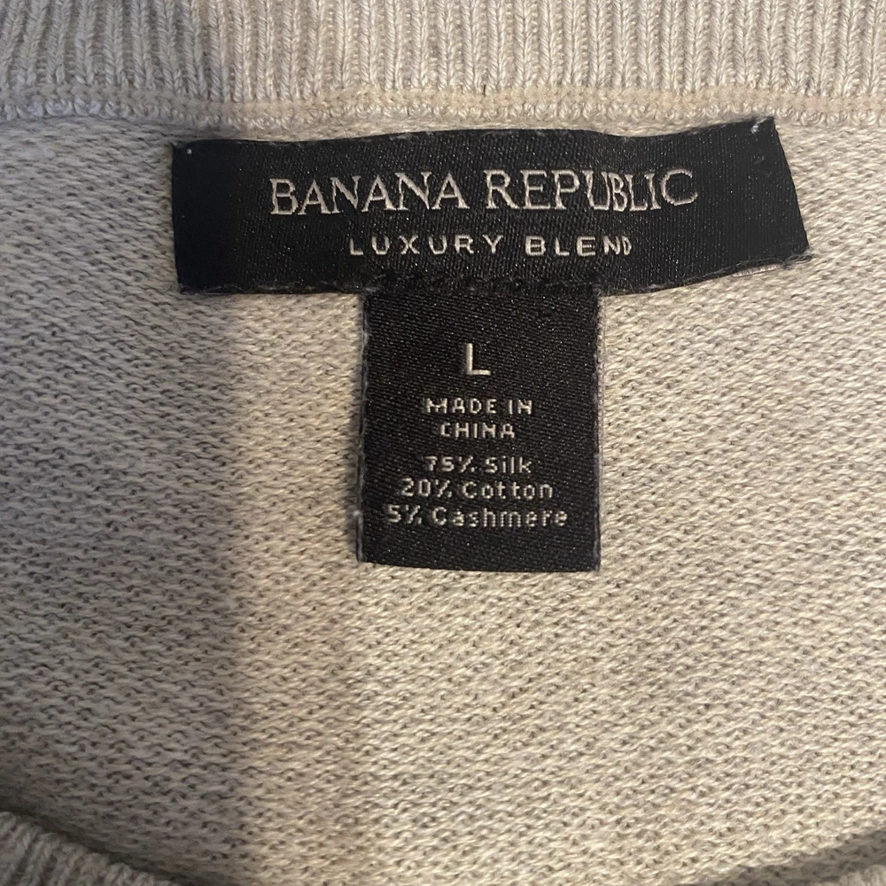 Banana Republic Silk Cotton Cashmere Sweater Med Striped Color Block Gray Beige Condition: No obvious condition issues Fiber Content: 75% Silk 20% Cotton 5% Cashmere Marked Size: Large Approximate Measurements Laying Flat Shoulder: 19” inches (from shoulder seam to shoulder seam) Chest: 23” inches (from underarm seam to underarm seam) Sleeve: 28” inches (from shoulder seam to bottom of cuff/hem) Length: 29” inches (from top of back collar to bottom hem) Smoke free Fast shipping