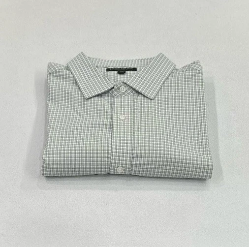 $ 7.9Banana Republic Men's Slim Fit Stretch Poplin Shirt, Green/Blue Striped, Size M