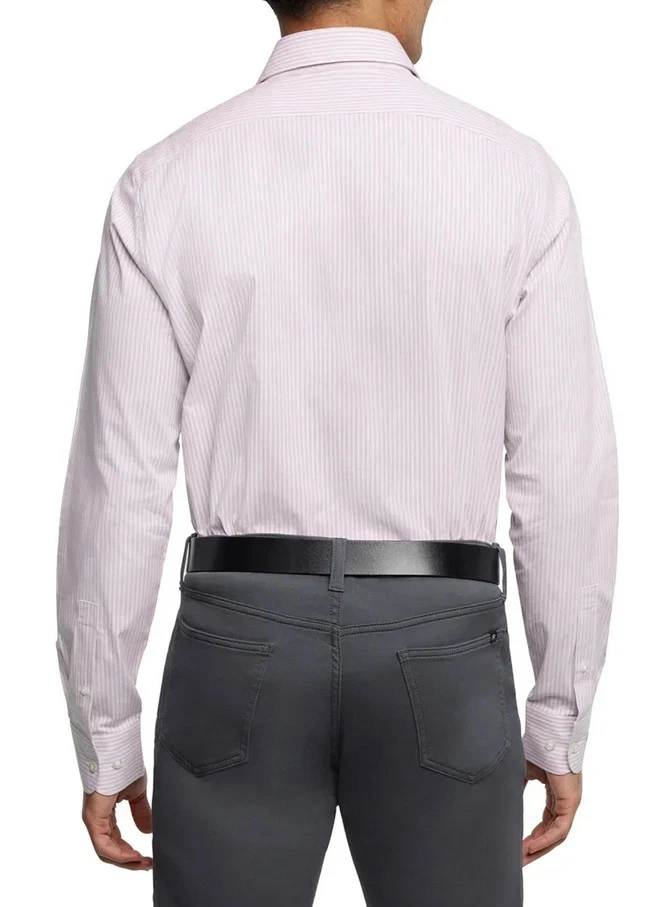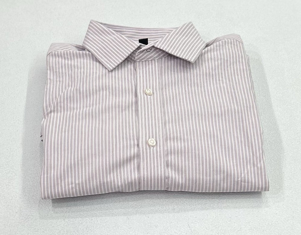 Banana Republic Men's Slim Fit Stretch Poplin Shirt Size: Large Color: Pink Striped Content: 97% Cotton / 3% Spandex