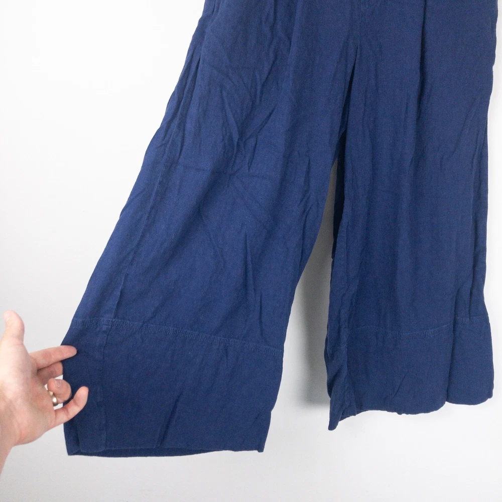 Item Description : Banana Republic Pants Notes & Features : Cropped Wide Leg Pull on Linen blend Front side slash pockets Fake back pockets Size : Women's Size Small (actual: 30x23.5) Measurements : Please see photos. If a measurement is missing, ask and we will get it for you. Condition : Good pre-owned condition. Flaws : Stitching on fake back pocket is starting to come loose; please see in photos. Shipping : We always ship via the USPS with a tracking number ASAP, Monday-Saturday, and do our best to take care of you and the item at ALL times. Please see the Shipping, returns, and payments section for all available shipping options and prices. Packaging : The item is packaged/shipped in a sealed plastic bag inside of a sealed poly bag mailer. Storage : All items are stored in a smoke free home. Any questions? Please ask; we are happy to answer. Thank you for looking!