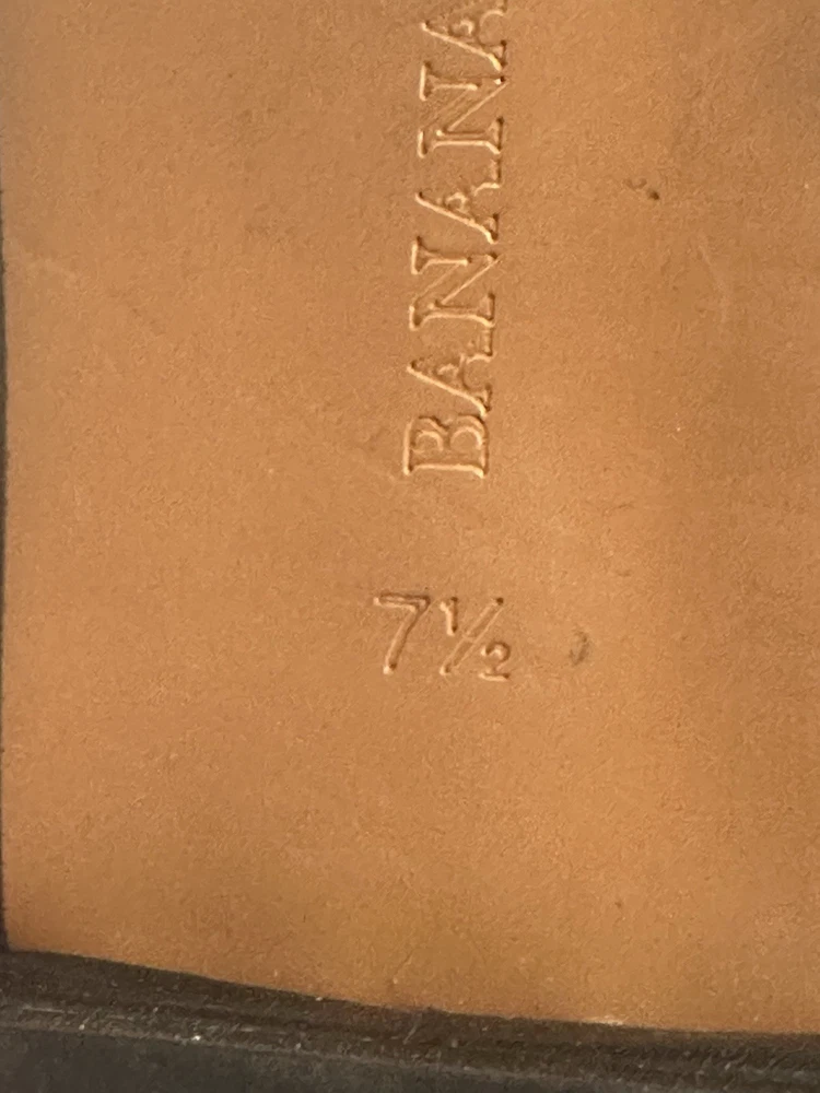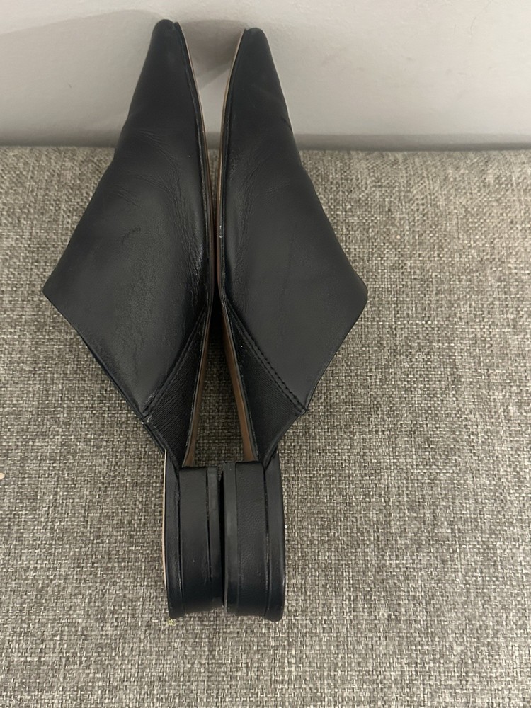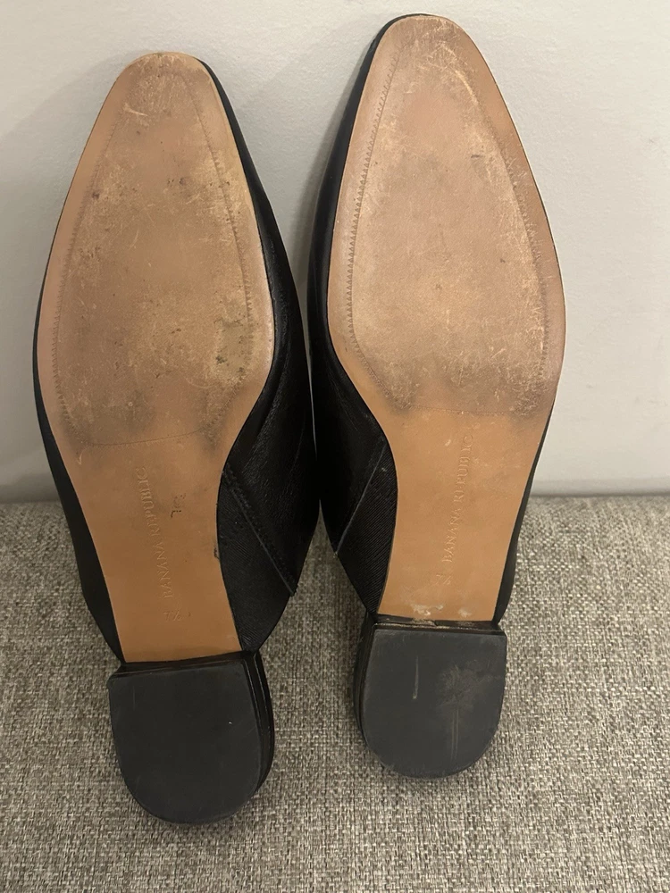 This product is a pair of Banana Republic Women’s Black Leather Slip On Preppy Flats in size 7.5. These stylish flats feature an almond toe shape, slip-on closure, and a comfortable leather lining. They are perfect for a party, cocktail event, or business occasion, with a preppy theme that adds a touch of elegance. The lightweight and comfortable design make them suitable for all-day wear, while the leather upper and outsole ensure durability and quality. Ideal for a chic and sophisticated look. Preowned Good Condition