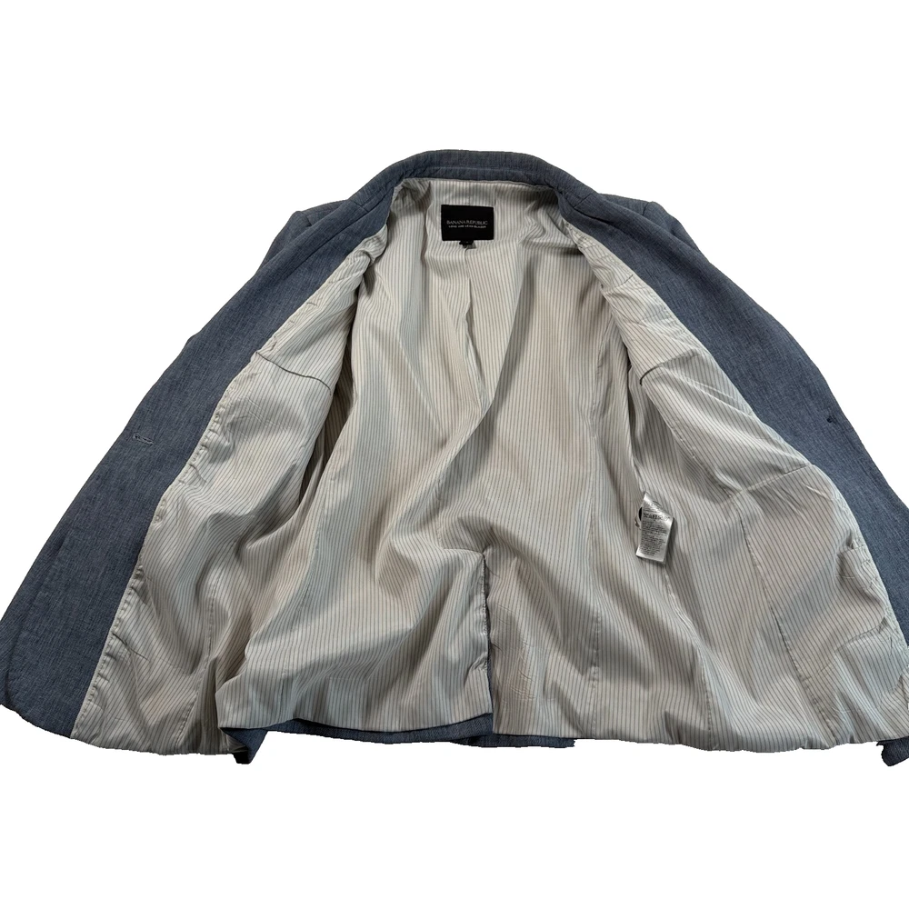 Banana Republic Womens Long and Lean Stretch Cotton Blend Blazer Blue Sz 4 Excellent pre-owned-condition Measurements (approximate, laying flat) Bust (underarm to underarm): 17" Length: 25" Style: Academia, Preppy, Career, Executive