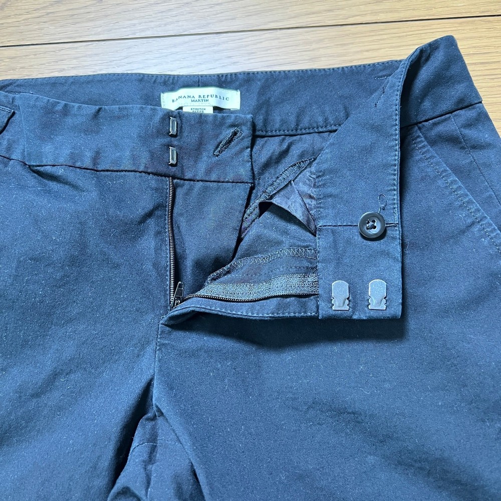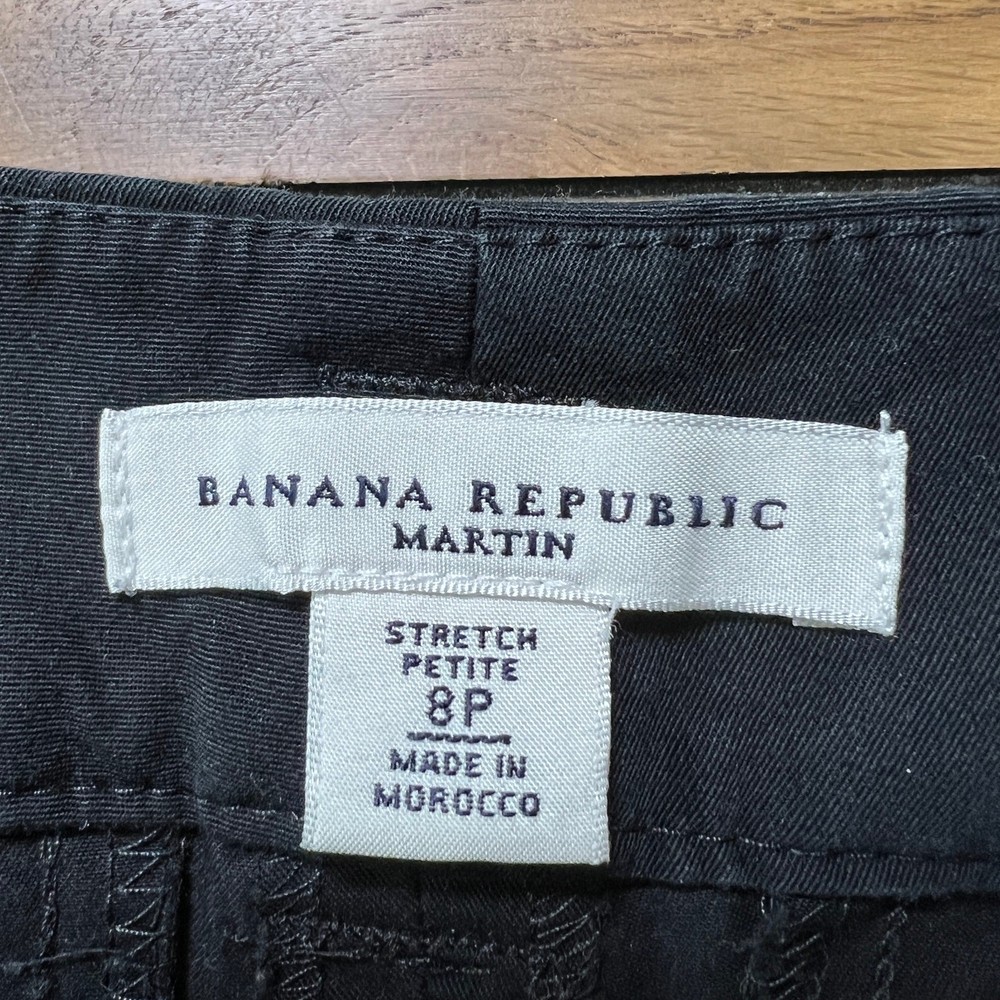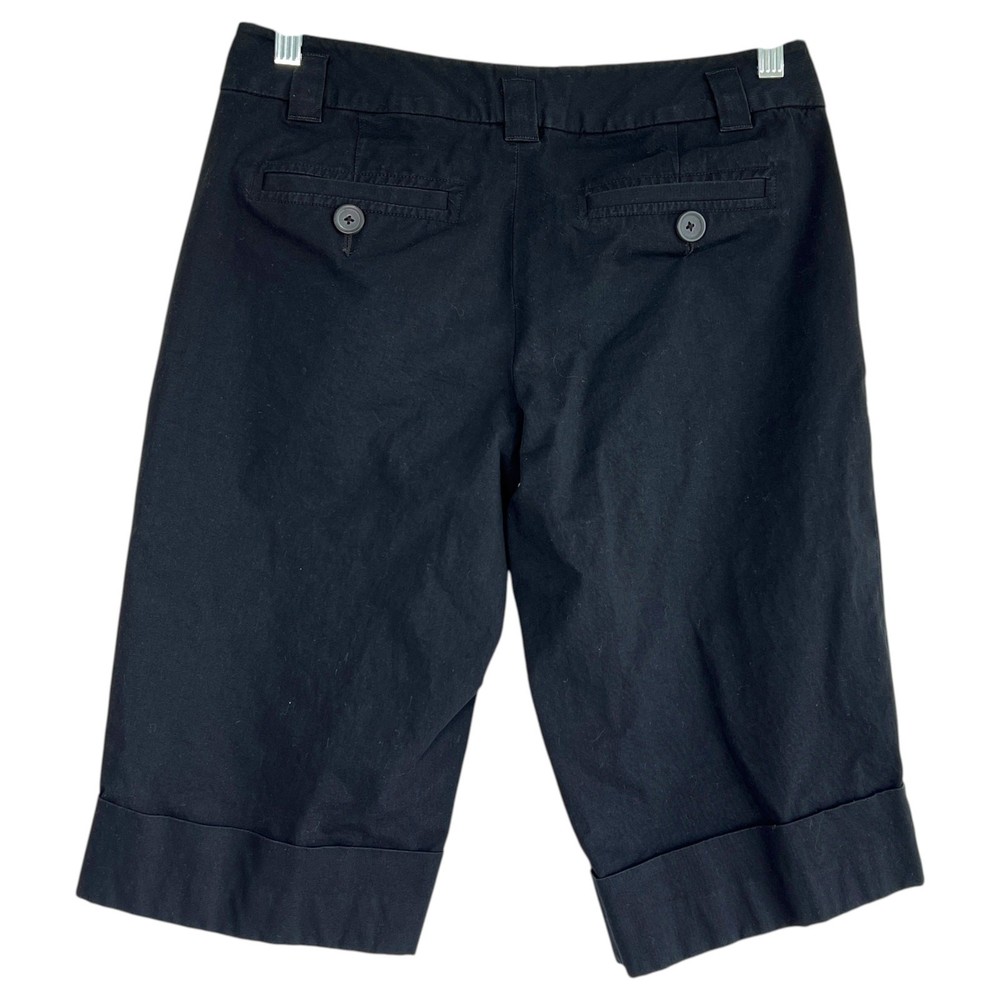 Banana Republic Womens Martin Bermuda Shorts Black Size 8P 2 front slash pockets Wide cuff at hem 2 back pockets with buttons Double hook and bar closure with zipper Excellent pre-owned condition Size: Women's 8 Petite Measurements (approximate, laying flat) Waist: 15.5" Inseam: 15.25" Preppy, Golf, Work, Coastal, Outdoors