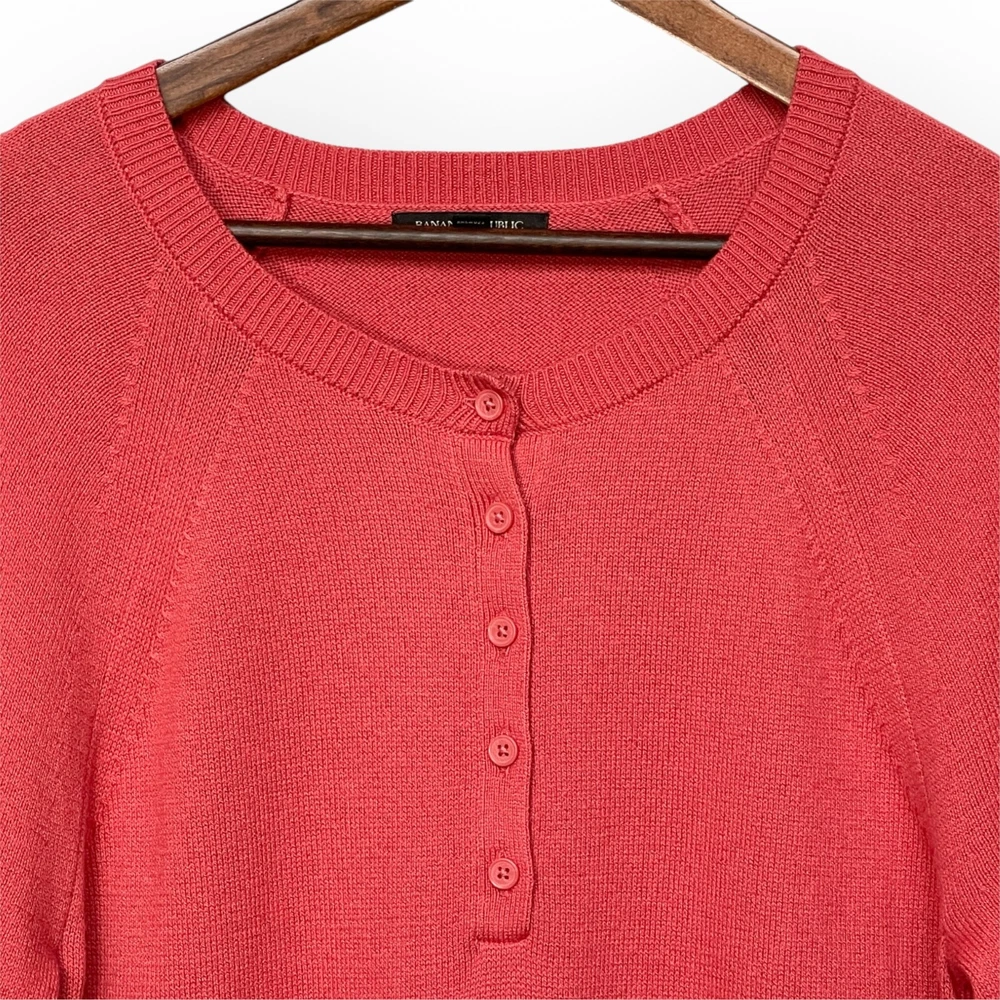 Banana Republic Women's Pink Long Sleeve Raglan Henley Sweater Size M