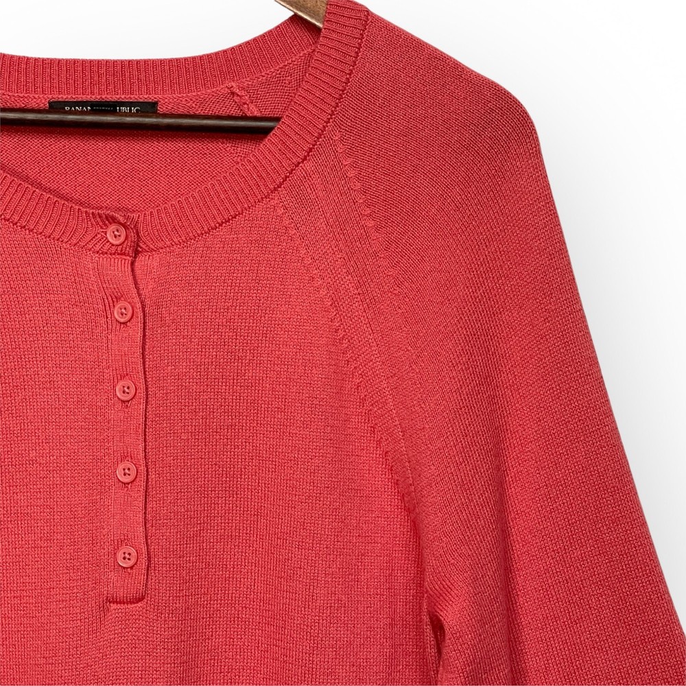 * Banana Republic Raglan Henley Sweater Women Size M Pink Long Sleeve * *Good Pre-owned Condition *Please see photos for approximate measurements (in inches), fabric make, washing instructions, and other notable details. *Purchased items are shipped out next business day.