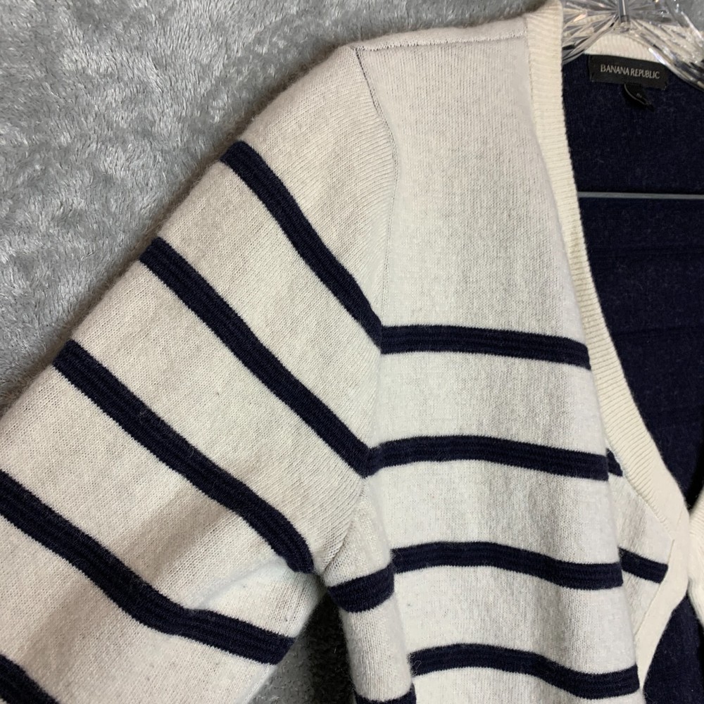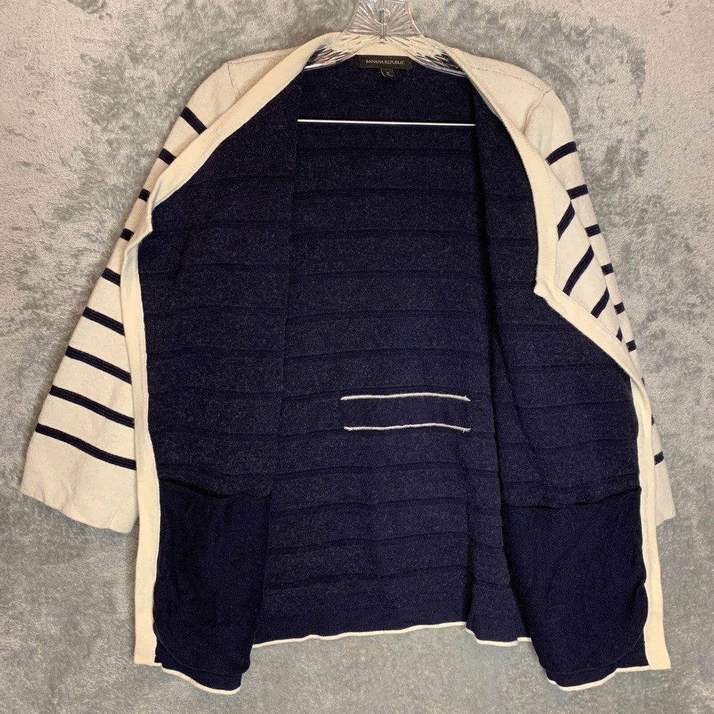 Good Pre Owned condition. It appears there was a belt but it is missing. Please see photos for details. SUPER FAST SHIPPING!!! We ship next business day! If you aren't happy with your purchase we offer 30 day FREE returns. No questions asked! Banana Republic Women Preppy Nautical Waterfall Merino Wool Cashmere Cardigan S