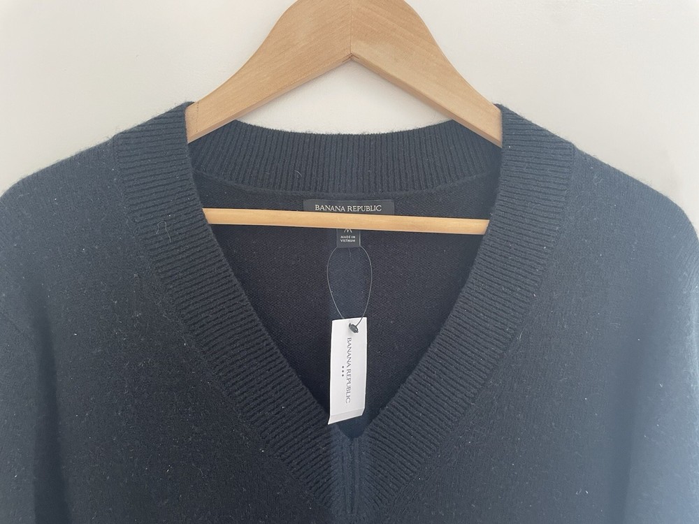 Banana Republic Women's Solid Black Acrylic Blend Rib-Knit V-Neck Sweater Medium. Condition is new with tags. Smoke free, pet free home. Shipped via USPS Ground Advantage.