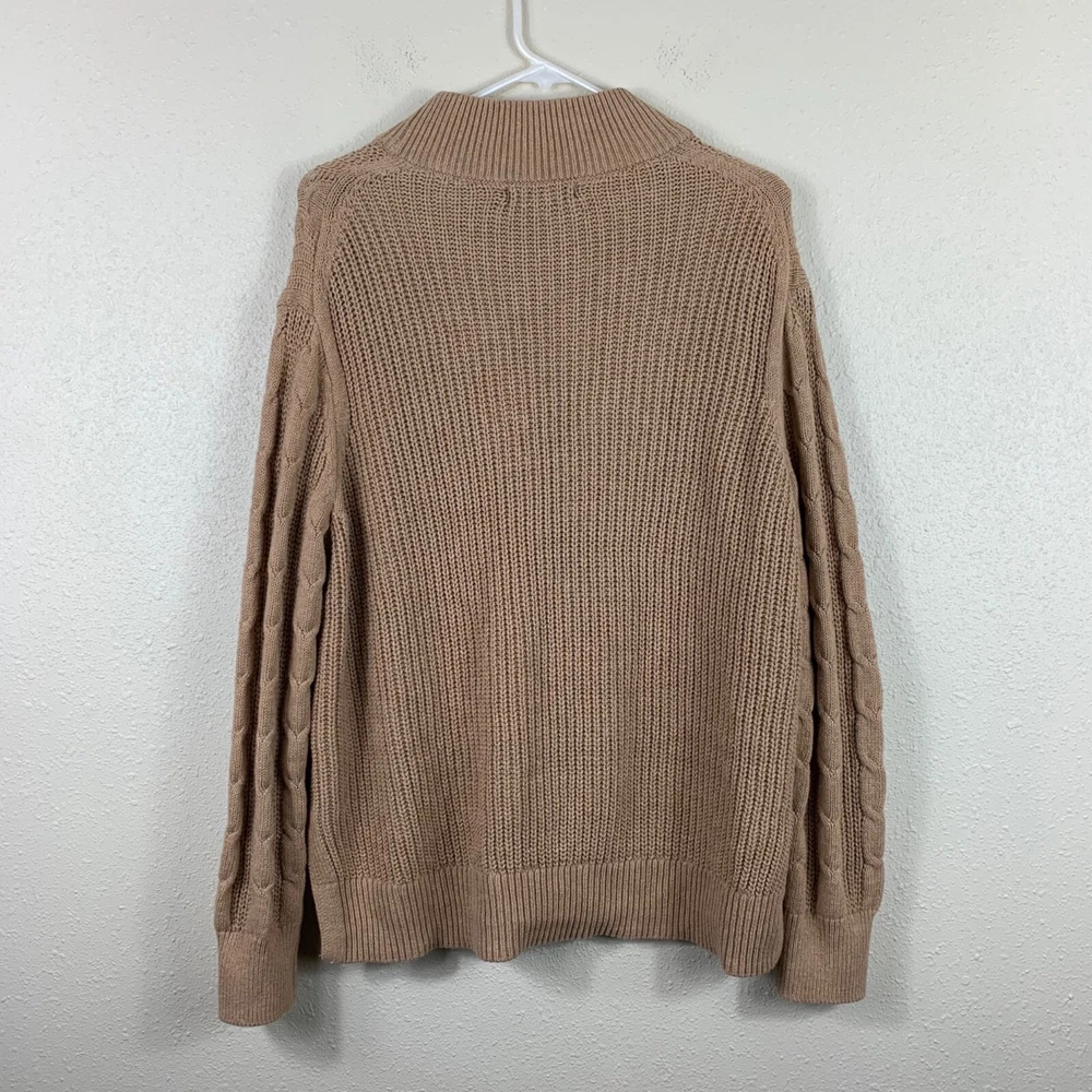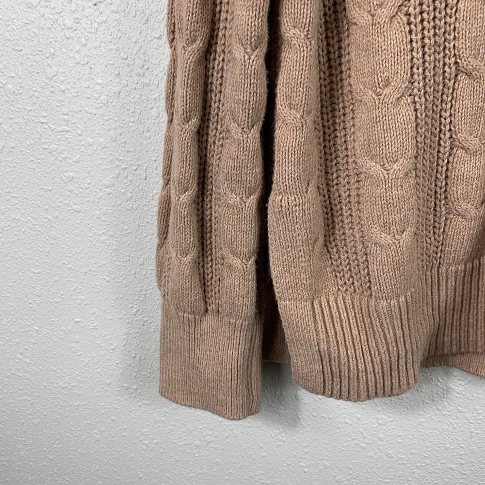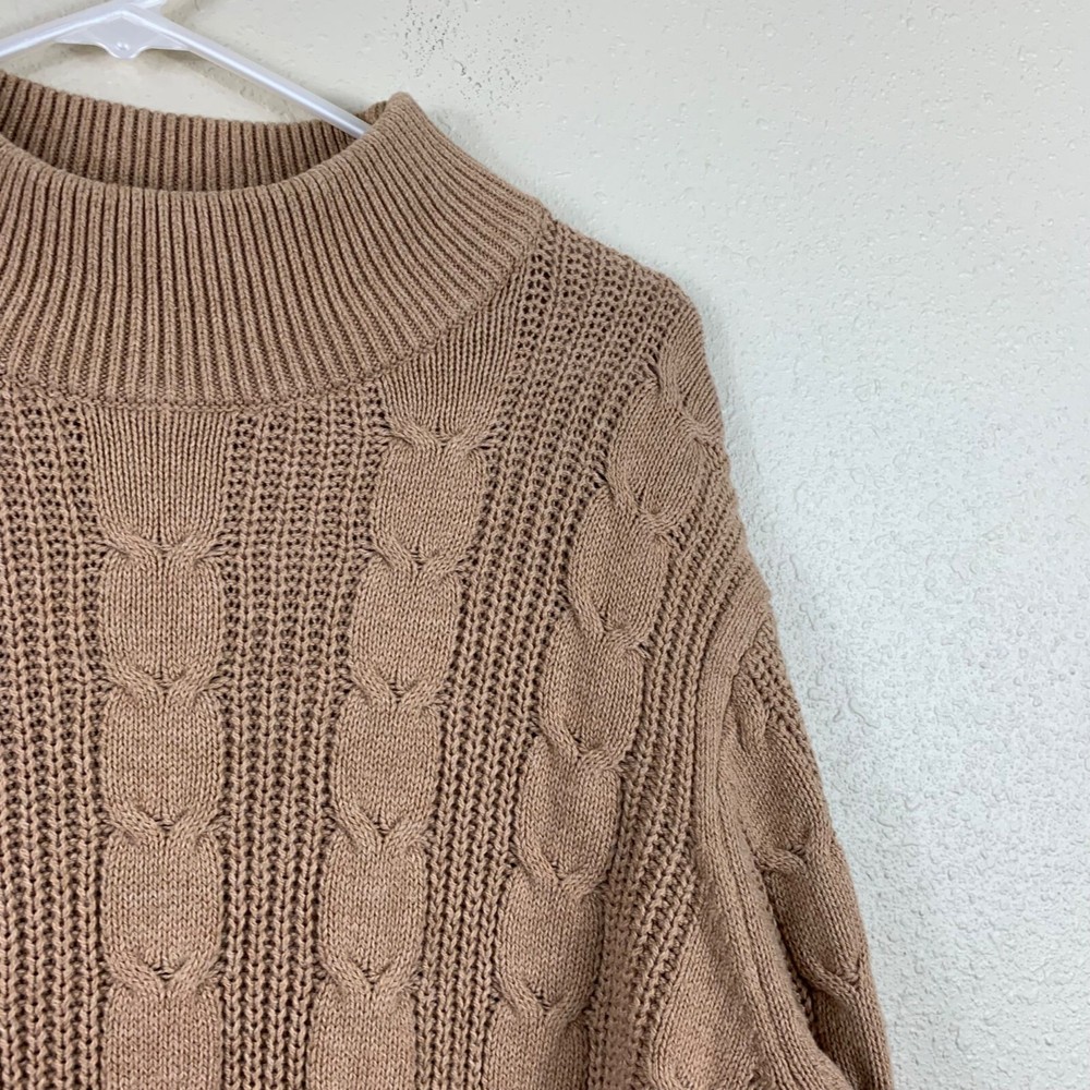 Banana Republic Women’s Camel Cable Knit Mock Neck Sweater - Size XL Great preowned condition! Cable knit detail on the front Ribbing on collar, hem, and cuffs Shoulder: 18" P2P: 23" Sleeve: 25" Length: 27" Measurements are lying flat, and estimates only. 1P25 15-5887 1 lb 6 oz