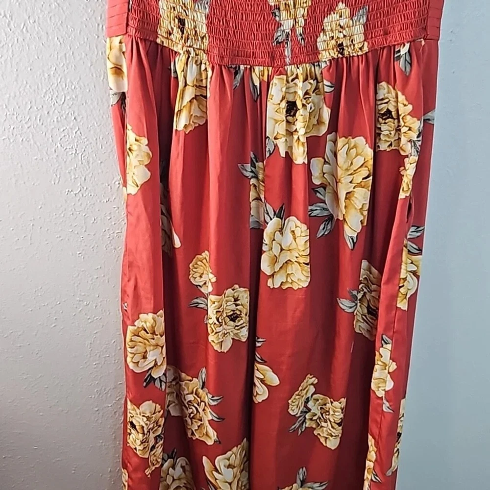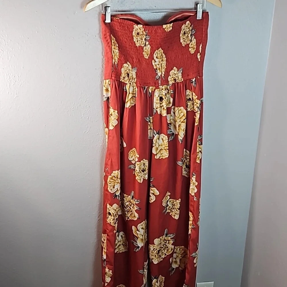 Bohemian floral jumpsuit Embrace bohemian flair with this Band of Gypsies peach floral jumpsuit. Perfect for casual outings or summer events. - Brand: Band of Gypsies - Color: Peach with floral pattern - Size: Medium - Features: Front pockets - Material: Lightweight fabric, perfect for warm weather - Condition: Good used condition, no notable damage - Care instructions: Machine wash cold, lay flat to dry