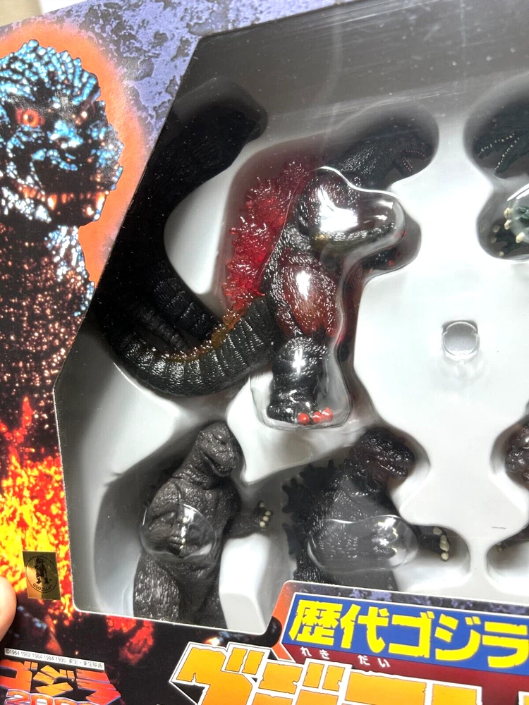 Description About This Items BANDAI 1999 Godzilla Collection Godzilla History Figure It includes all the monster kings from the first to 2000. Set contents: Godzilla 1954 Godzilla 1962 Godzilla 1964 Godzilla 1984 Godzilla 1995 Godzilla 1999 Condition The item is unopened and in very good condition. Included Items None Shipping We will ship your order via FedEx, DHL or Japan Post. The item will be shipped in a box with packaging material. Please check the expected arrival date for the shipping method you selected! However, delivery may take longer depending on the shipping situation in your country and the situation of the post office. Please note that it may take longer to deliver than the "expected delivery date". We will always ship your item with a tracking number, so you can order without worrying about delivery. You can track your delivery status at any time. Shipping is available from Monday to Friday. It is not available on Saturdays and Sundays because the shipping company is closed. If we do not hear from you after 3 days, your order will be canceled or a case will be filed. About Importer's Obligation Import duties, taxes and charges are not included in the item price or shipping cost. These charges are the buyer's responsibility. Please check with your countrys office to determine what these additional costs will be prior to bidding or buying. We cant reply gifts or unreasonable requests such as declared amount. If have any questions, anytime contact me! and if you look for any item, please feel free to contact us. Thank you for Watching.