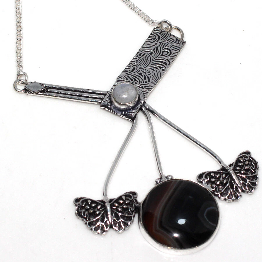 Main Stone Creation: Natural gtin13: does not apply Band Width: Band Width Main Stone: Banded Black Onyx Metal Purity: Unknown Country of Origin: India Occasion: Wedding Gifts, Valentine's Gift, Mother's Day, Christmas Secondary Stone: Rainbow Moonstone Main Stone Treatment: Not Enhanced Country/Region of Manufacture: India Theme: Ethnic Necklace Length: 19 Main Stone Shape: AS Seen in Picture Material: Stone Brand: HANDMADE Personalize: No Necklace Size: 19 Features: Silver Plated Era: Undated Base Metal: Copper Length: 19 Metal: Copper Alloy Cut Grade: Excellent Style: New Setting Style: collet setting Handmade: YES Number of Gemstones: AS Seen in Picture Wholesale: As your Request Antique: NO Size: 19 UPC: does not apply Sizable: Yes Customized: No Pendant Shape: AS Seen in Picture MPN: RJ28982 Type: Necklace Main Stone Color: As Seen in Picture Color: AS SEEN IN PICTURE