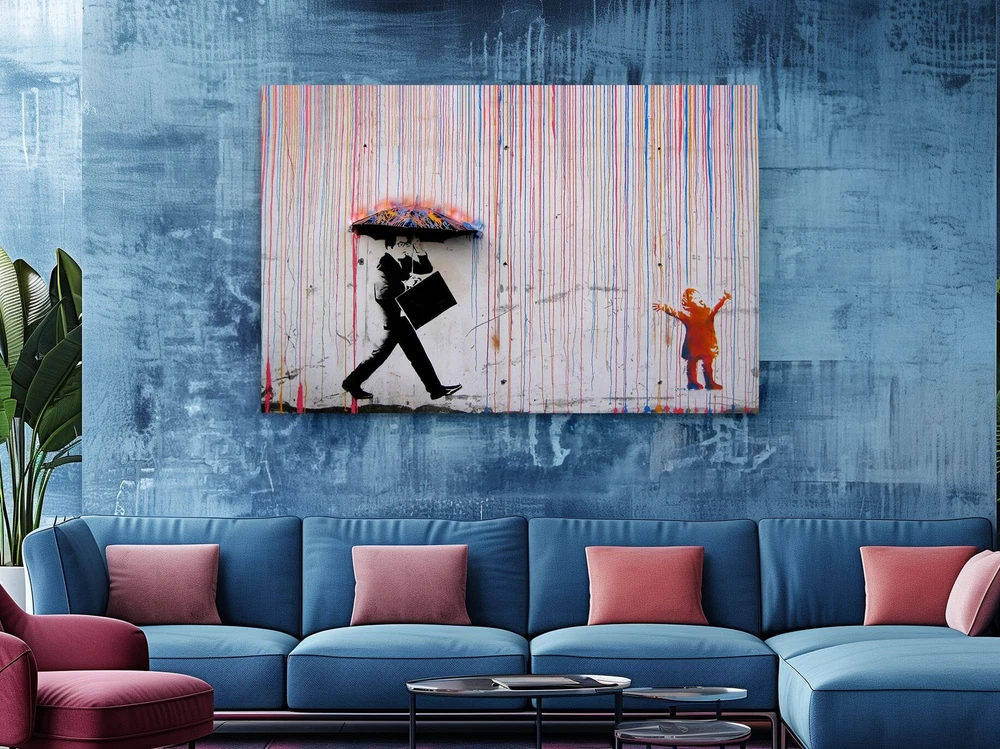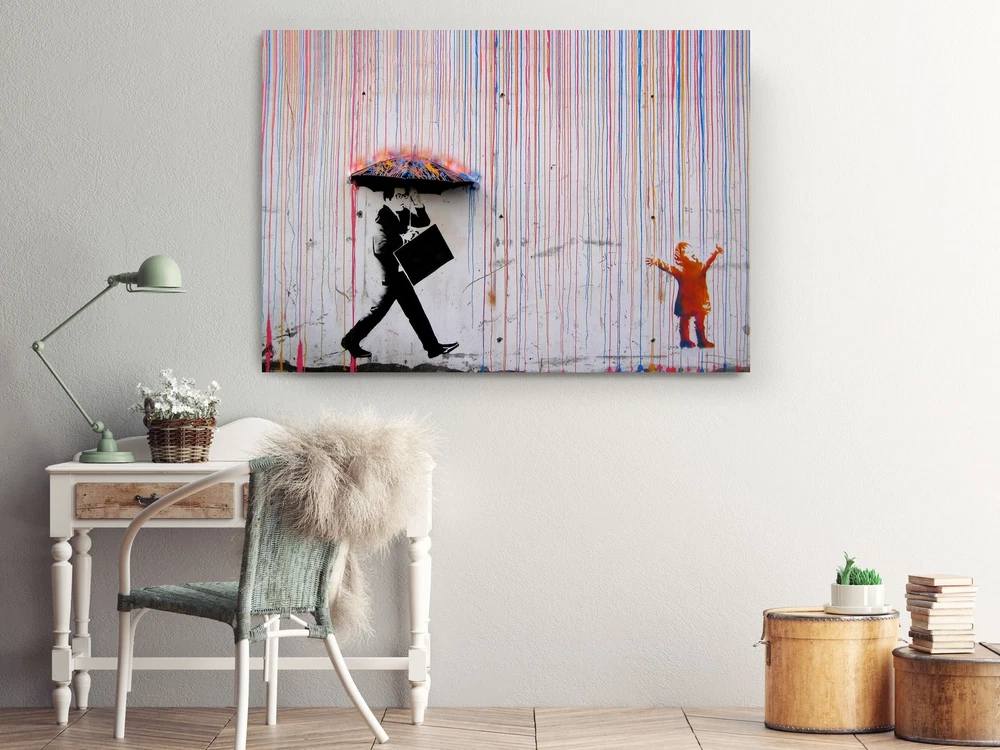 Banksy Colored Rain - Canvas Ready To Hang Wall Art Canvas Print Home Decor