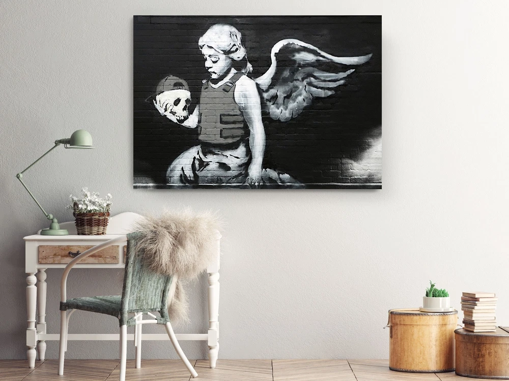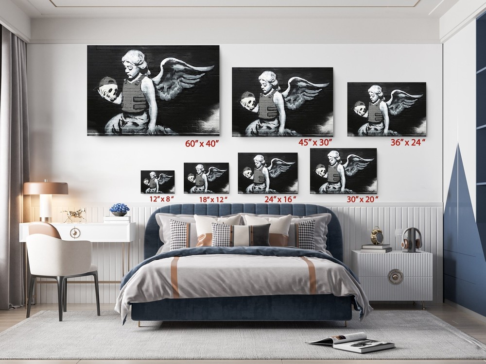 Banksy Fallen Angel Print Canvas Ready To Hang Wooden Frame Home Decor