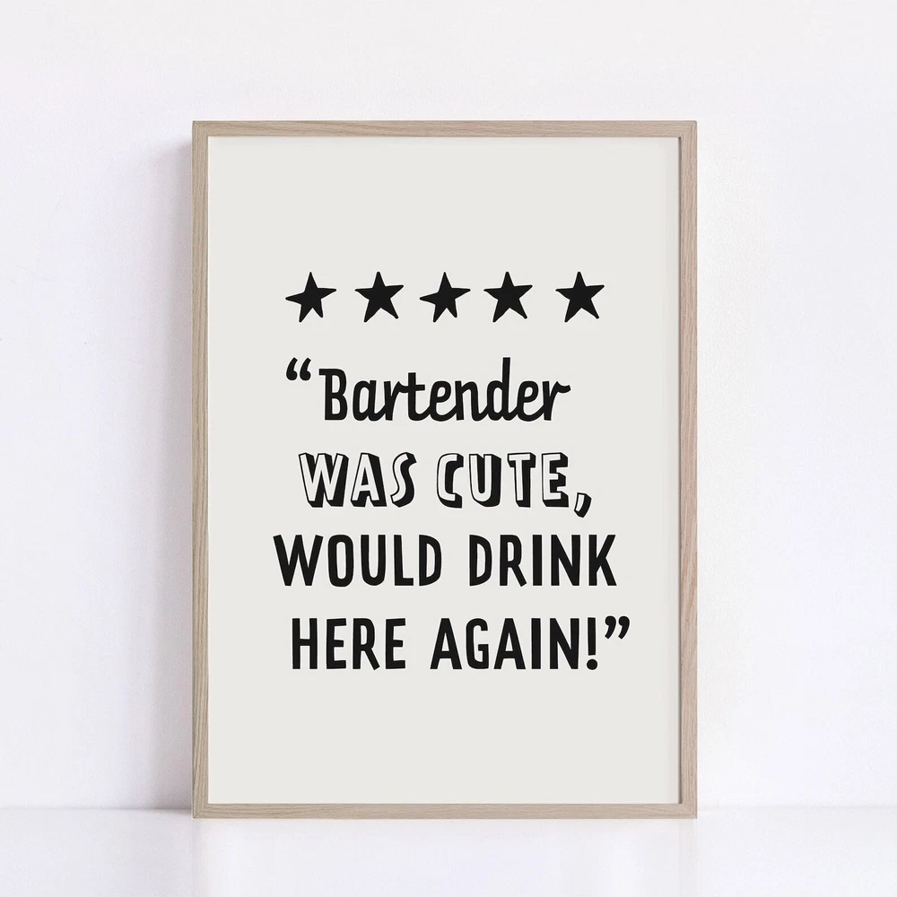 Bar Cart Art Print Bartender Reviews Art Printable Wall Art Modern Bar Cart Decor Print Trendy Aesthetic Sign Material: Premium luster photo paper Print type: Inkjet printing One side printed + The finish provides the highest possible resolution and color saturation + Lasts up to 200 years in color and 400 years in black-and-white + Printed on high-quality resin-coated photo base paper medium + Posters can be hung with double-sided tape, tacks, or framed + Hand washing with a gentle cry cloth is recommended for extended durability I will hand select the best choice of paper for your chosen design to ensure top quality results for a beautiful, bright and luxurious print. All prints are sealed in cellophane slips for protection during transportation, and are shipped in a protective cardboard envelope.