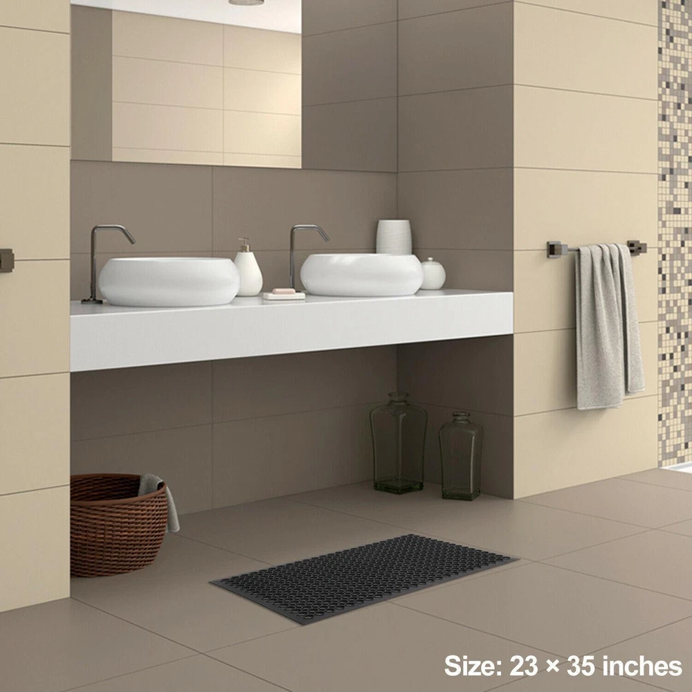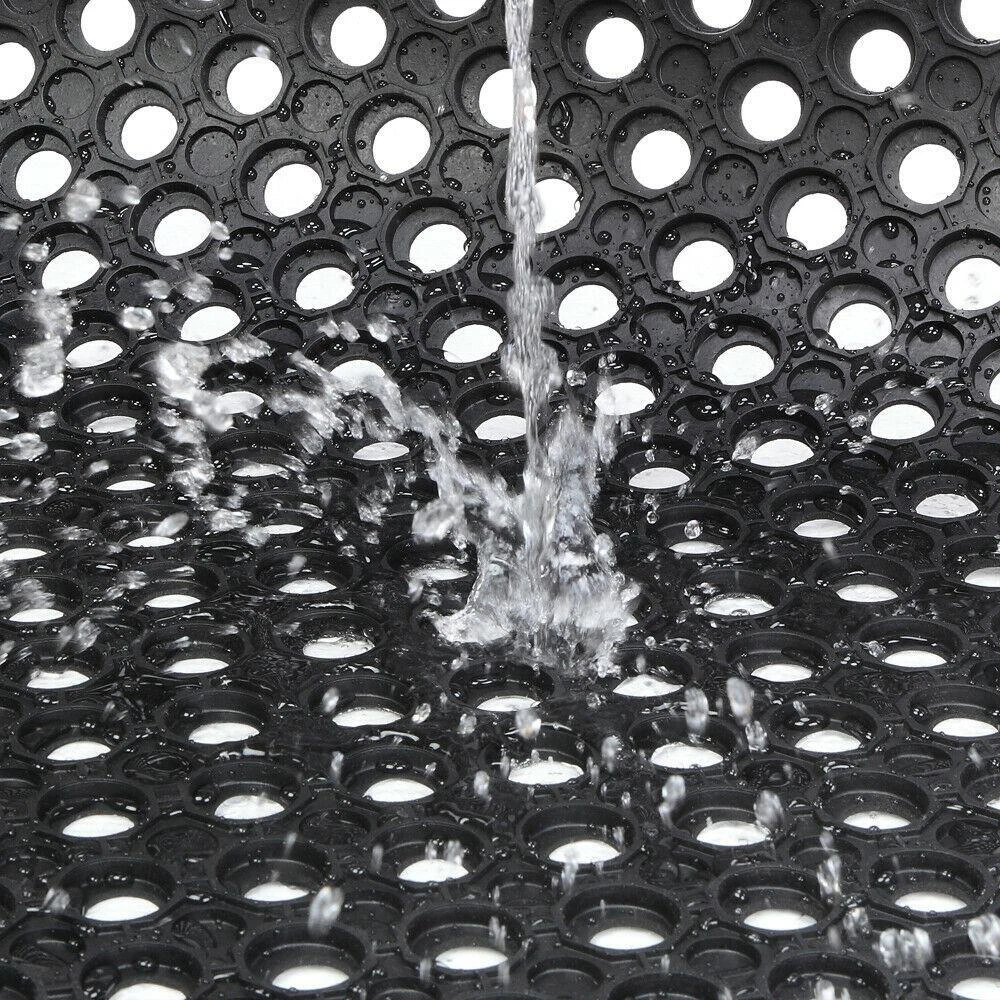 Introductions: The Bar Kitchen Industrial Multi-functional Anti-fatigue Drainage Rubber Non-slip Hexagonal Mat features large hexagonal drainage holes that help to reduce the amount of slippery liquids and oils left on the floor and prevent dangerous accidents. Hence, it is ideal for uses in bar, kitchen, restaurant, as well as warehouse or other industrial areas where moisture and heavy foot traffic are a problem. Made of high-grade, eco-friendly rubber, it is sustainable for long-lasting use. Even better, it is water resistant and easy to wash clean. Don't hesitate to buy now! It surely is worth your investment! Features: 1. Built with large hexagonal drainage holes 2. Reduce the amount of slippery liquids and oils left on the floor 3. Help to prevent dangerous accidents 4. Ideal for uses in bar, kitchen, restaurant, as well as warehouse or other industrial areas where moisture and heavy foot traffic are a problem 5. Made of high-grade, eco-friendly rubber, sustainable and durable 6. Water resistant and easy to wash clean Specifications: 1. Material: Rubber & Polyester & PVC 2. Color: Black 3. Dimensions: (35.43 x 23.62)" / (90 x 60)cm (L x W x H) 4. Weight: 5.73lbs / 2.6kg Package Includes: 1 x Floor Mat